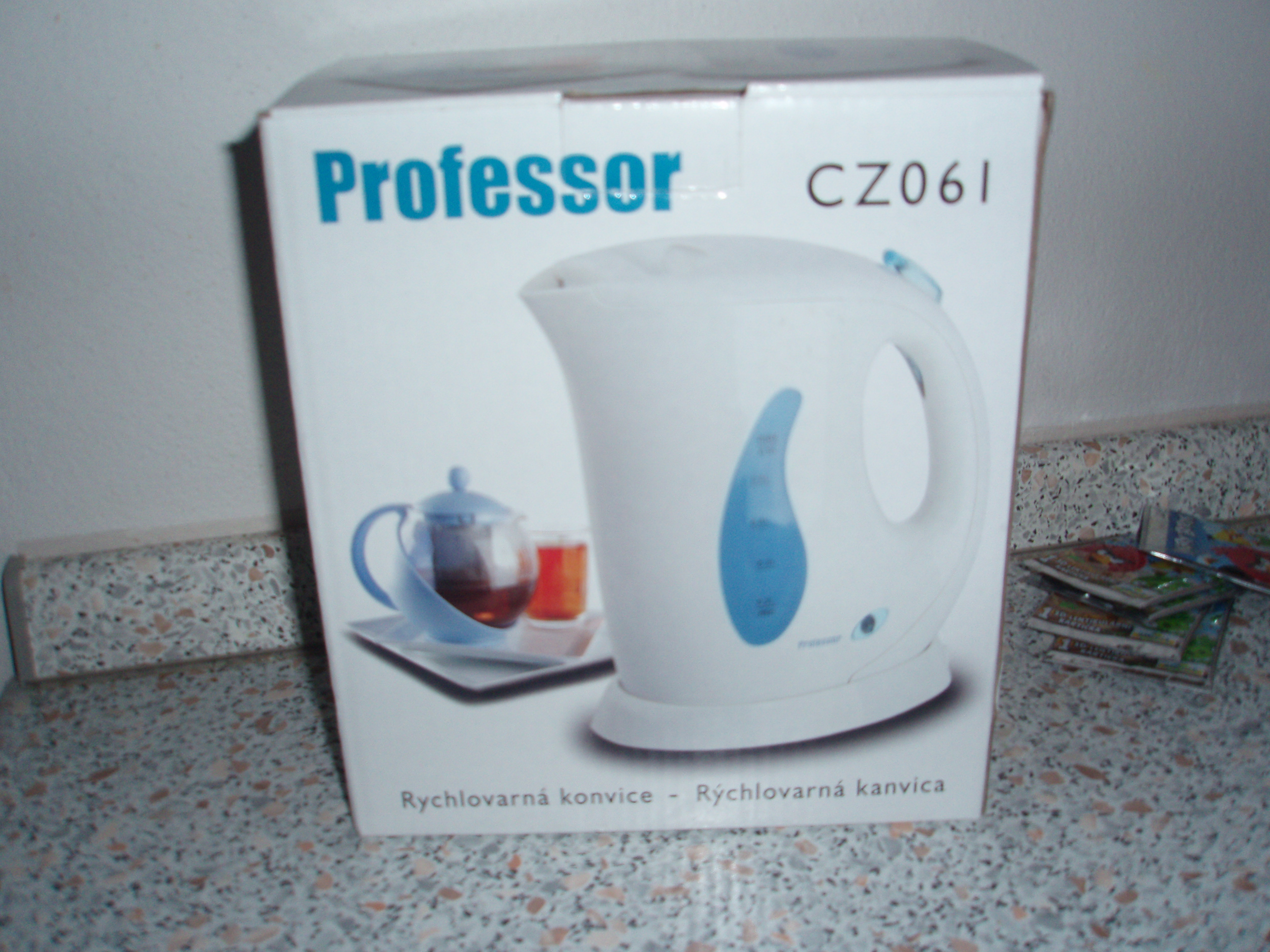 Po cestě jsem našel elektroobchod a zamířil jsem do regálu s konvicemi. Byly tam pekně vyrovnané podle velikosti, jak na vojně. Zamířil jsem k těm nejmenším a pořídil konvici za 200,- Kč. Jmenuje se professor má obsah 0,6l (na moje velkokafe akorát). No a teť to nejdůležitější, odběr píšou 760W - 900W . Naměřil jsem 35A na 26V t.j. cca 910W. (Podotýkám se vším všudy i s mou trvalou spotřebou cca 50W).