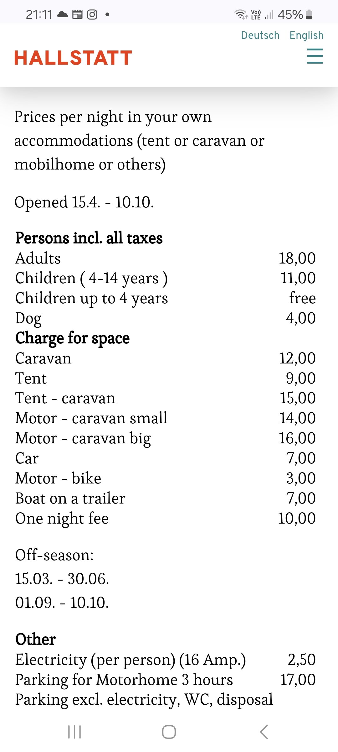 Dvě osoby,caravan,auto,elektrika za 70Eur na noc je dost.Když jedu na motorce tím směrem a spím na hotelích,tak pokoj pro 2 je okolo 80-100Eur a v tom bývá snídaně