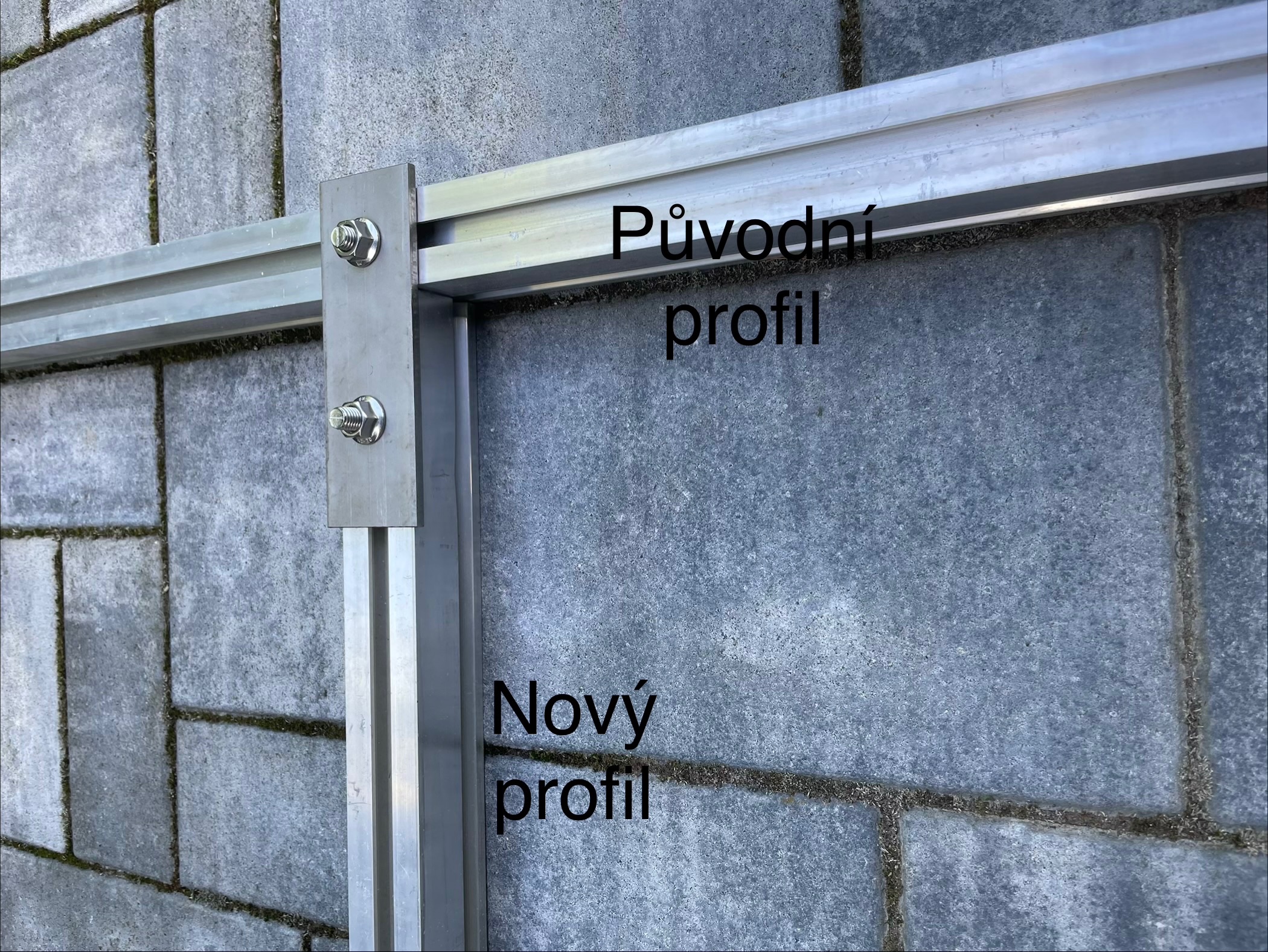 Mam v rade na vysku 8 panelu a budu pridavat 4 na sirku pod a napadlo me ze uchytim jednu stranu profilu pres nerez plochace ke spodni rade profilu viz nakres. Muze to takto byt nebo radeji dve rady profilu pod nove panely? Diky