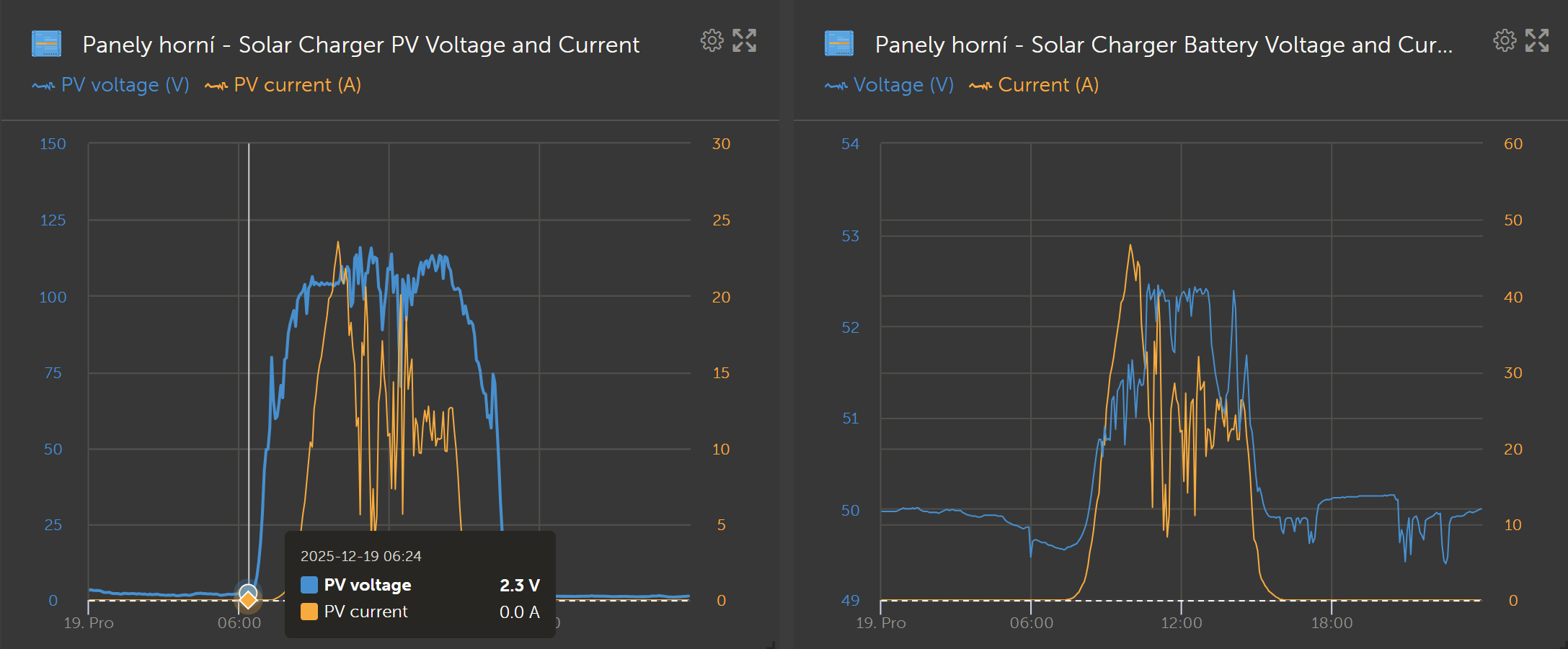 A co jiného než proud z panelů by to bylo? Vždyť to odpovídá i vzhledem k tomu průběhu do baterie.Radar píše: sob pro 20, 2025 2:22 pmOpravdu je to proud na straně z panelů ...? To se mi nezdá... Tam jsou 3S, ne ...?kolik?