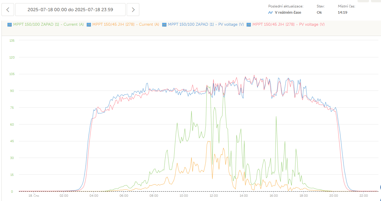 Dokud to na tu strechu nenamontujes,tak se na zadny graf nepodivas.A napr. mppt configurator od Victronu pracuje primarne jen s temi max hodnotami z panelu(i kdyz je tam moznost rucniho zadani vsech hodnot),takze ti muze dost zkreslit moznosti vysledne instalace.Paulob píše: sob pro 20, 2025 12:13 pmA není jednodušší se podívat do grafu ve VRM v době maximálního výstupu a uvidíte, jaký máte maximální vstup proudu do MPPT? A uvidíte reálná čísla a zjistíte, jestli jste na hraně, nebo je dostatečná rezerva.