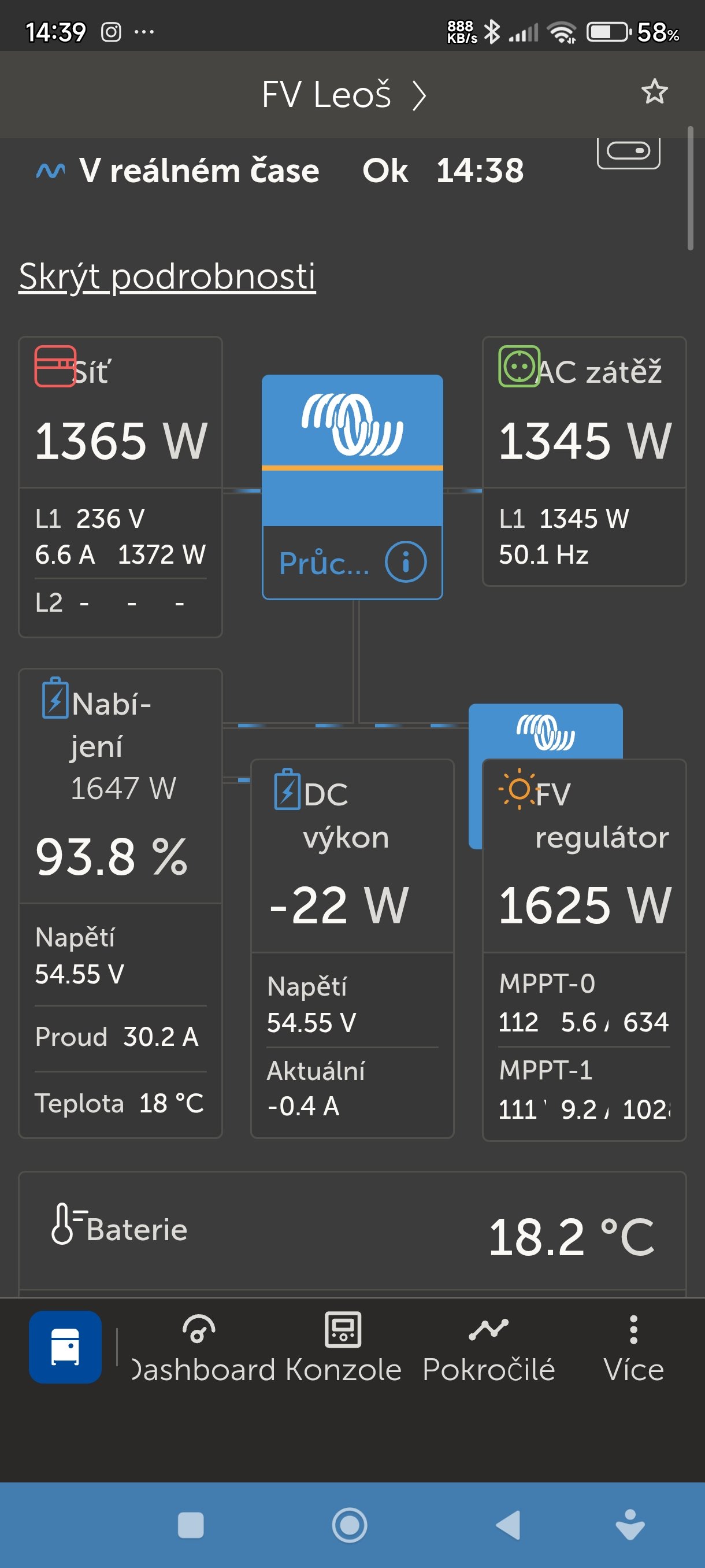 1. Jih 300Wp, J-Z otočný 300Wp, 12V Carspa 1500W, 2x MPPT Victron 100/20, Lifepo4 105+135Ah