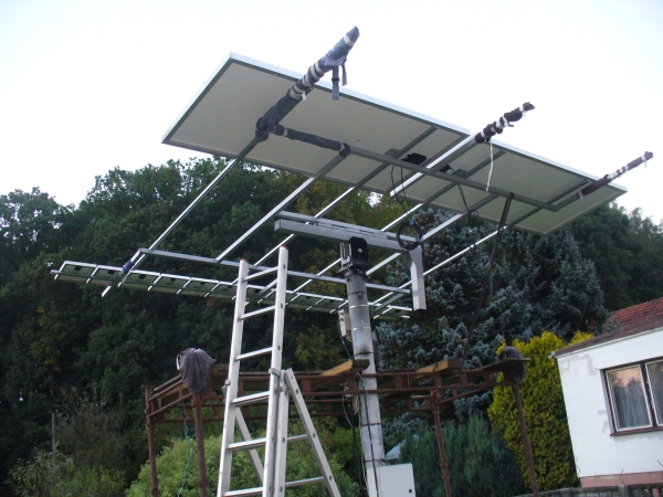 Takže je to tak že panely se doposud točí pouze kolem svislé osy?radimre píše:Tak po květnové větrné smršti jsem byl nucen dělat rekonstrukci..A abych mohl porovnávat funkci a složitost konstrukce pustil jsem se do polohovacího duálního systému