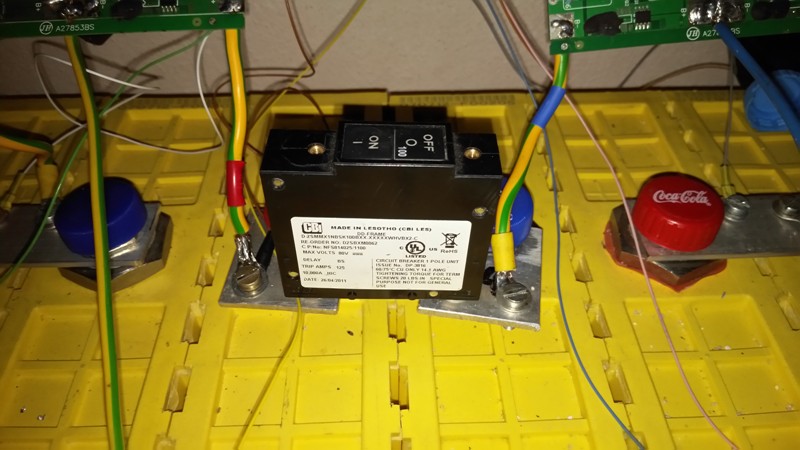 Kvůli lepšímu využítí místa v baterkárně (spíži) jsem se rozhodl články přeskládat. Při té příležitosti jsem místo jedné baterkové propojky osadil DC jistič 100A, aby jistil případný zkrat na vedení před pojistkami v rozvaděči.