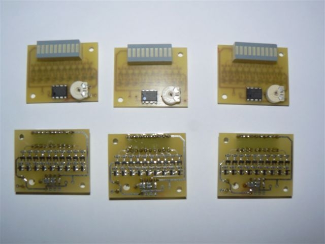 by mohlo být i více vzdálené. Na DPS je 1ks obyčejný OZ LM358 a LED bargraf.