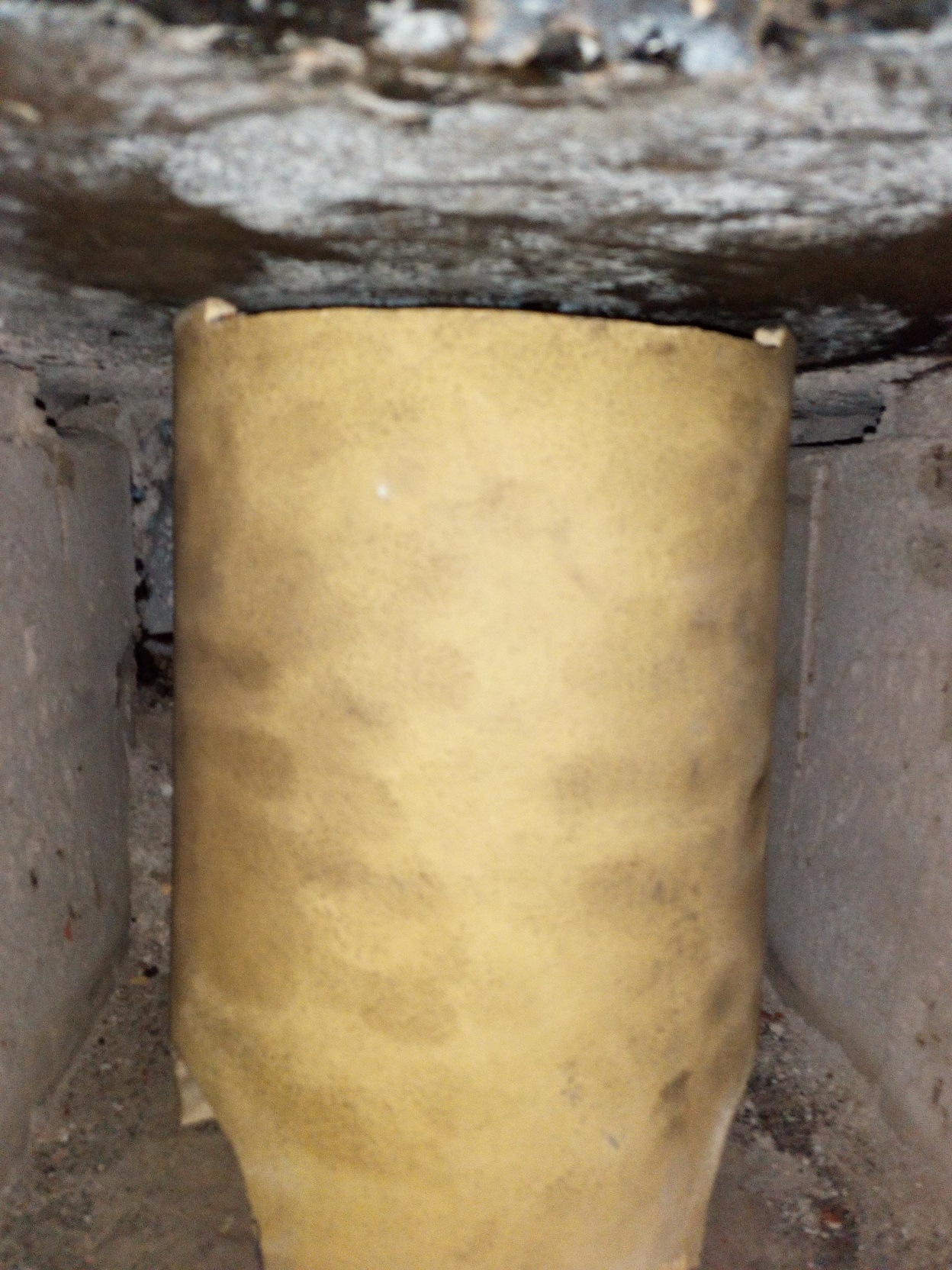 Tak a já tu mám další typ jak vylepšit spalování biomasy,po zateplení přikládací komory je v ní nádherně čisto,plech jen svítí šedou barvou i s poklopem.Po cestě z práce mi to nedalo a stavil jsem se do stavebnin pro něco vyhovujícího na prodloužení trysky a pokusu ,jak se to bude chovat.Už z předešlého kotle vím,že prodloužení trysky z žárového materiálu jen zkvalitňuje spalování dřevoplynu z přikládací komory.Jednak má více času na mix se sekundárním vzduchem a jednak je v ní vyšší teplota a spalují se i částice co by jen proletěly a nestihly vyhořet.Našel jsem komínový díl ze šamotu(takže nic moc) o průměru 140mm.Za deset minut z něho byla tryska do kotle a po dalších deseti už byla v kotli i s detaily pro vsunutí kolem svarů průchodu origo trysky.Vývody jsou z ní dva půloblouky o malinko větší ploše než je na vstupu a jejich vzájemná poloha je v úhlu 110°.Opět se prodloužila cesta plynů.Je to samozřejmě jen provizorka a nedivil bych se,kdybych ji zítra ráno našel na kusy i přez to,že jsem ji bral suchou z prodejny(vystavená