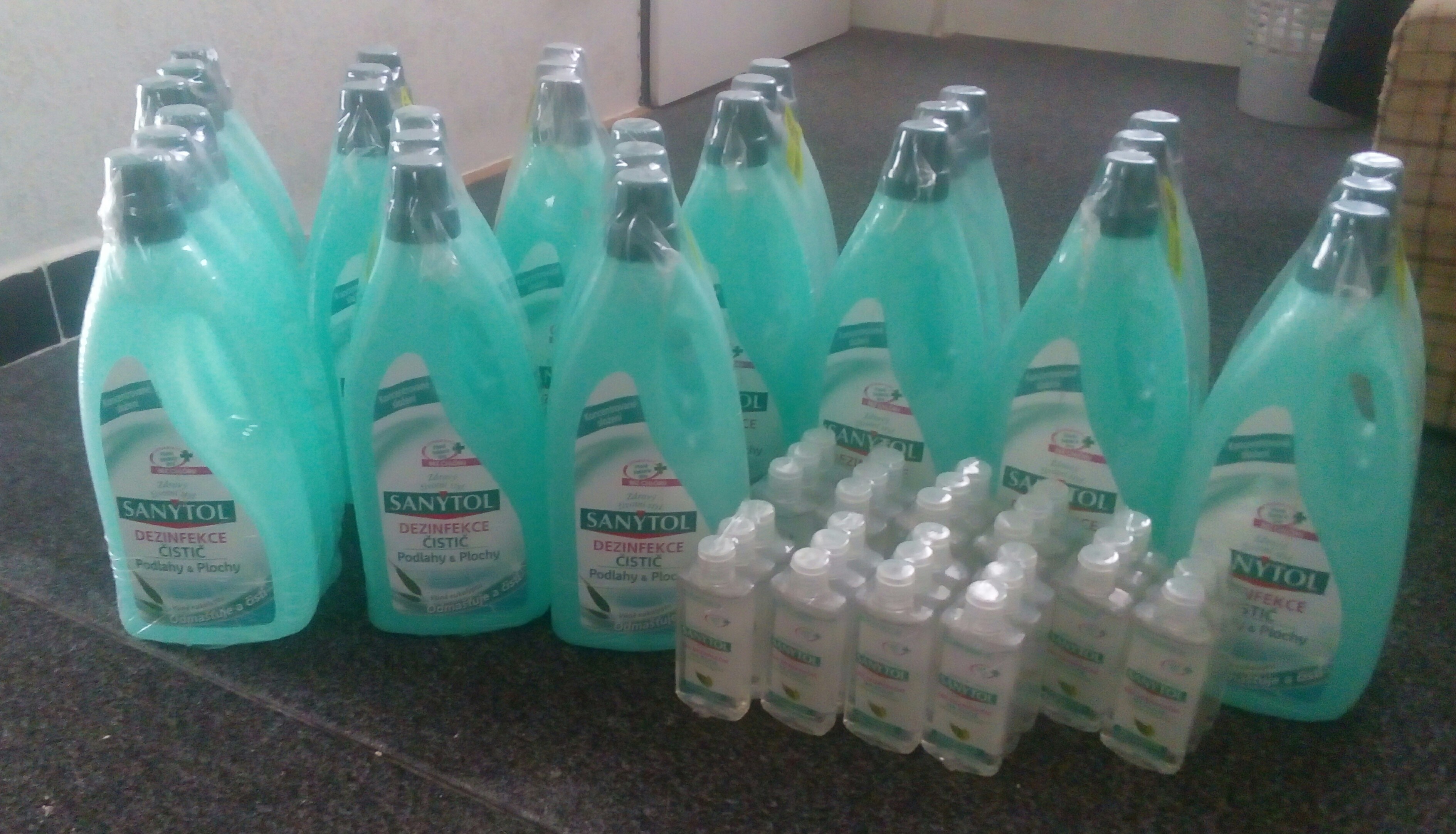 Tak ač všichni slibovali že do Vánoc stíhají dorazilo to až včera takže se s tím pak vypravim do nemocnice. Je až smutný že těchto pár lahviček stojí 4500kc a smutnější že 1l na plochy stojí skoro stejně jako 75ml na ruce