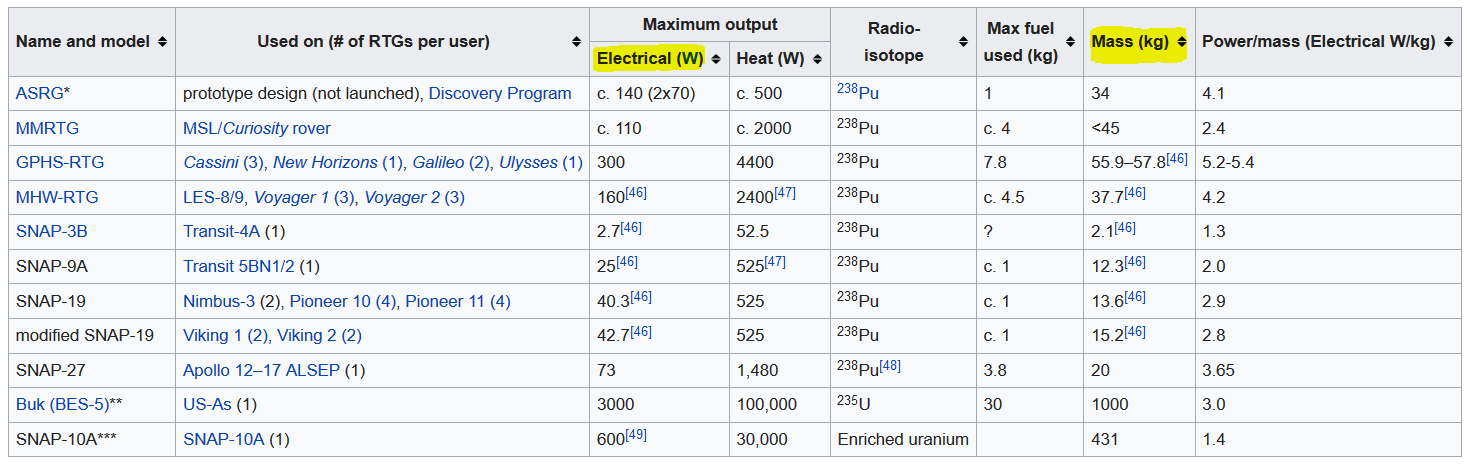 ve skutečnosti to s těmi radioizotopovými termo-elektrickými generátory není tak zlé. Výrobní cena je relativně nízká a extrémní navýšení prodejní ceny je způsobeno pouze tím, že se jedná o kontrolované substance, s jejichž pomocí by kdokoliv mohl vyrobit tzv špinavou bombu nebo nenávratně zamořit životní prostředí. Takže s jejich pořízením souvisí extrémně drahý byrobordel a pakárna.