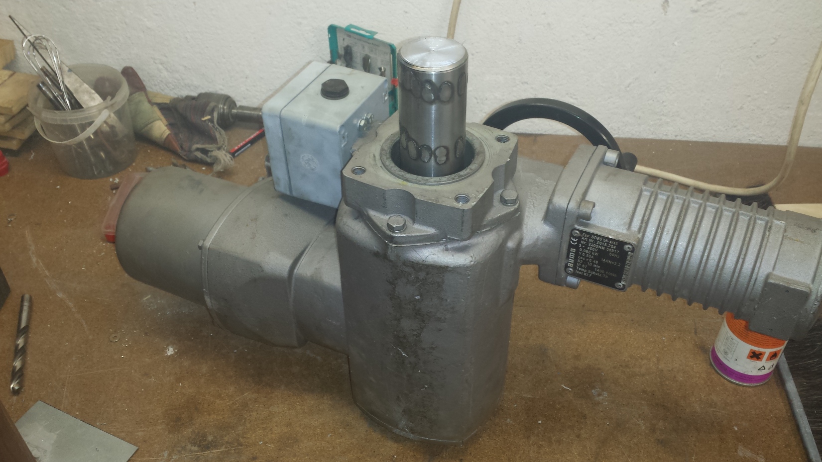 ještě doplním že pohon je průyslový pohon AUMA původně určen pro ovládání kulových ventilů (klapek), příkon cca 60W, foto níže