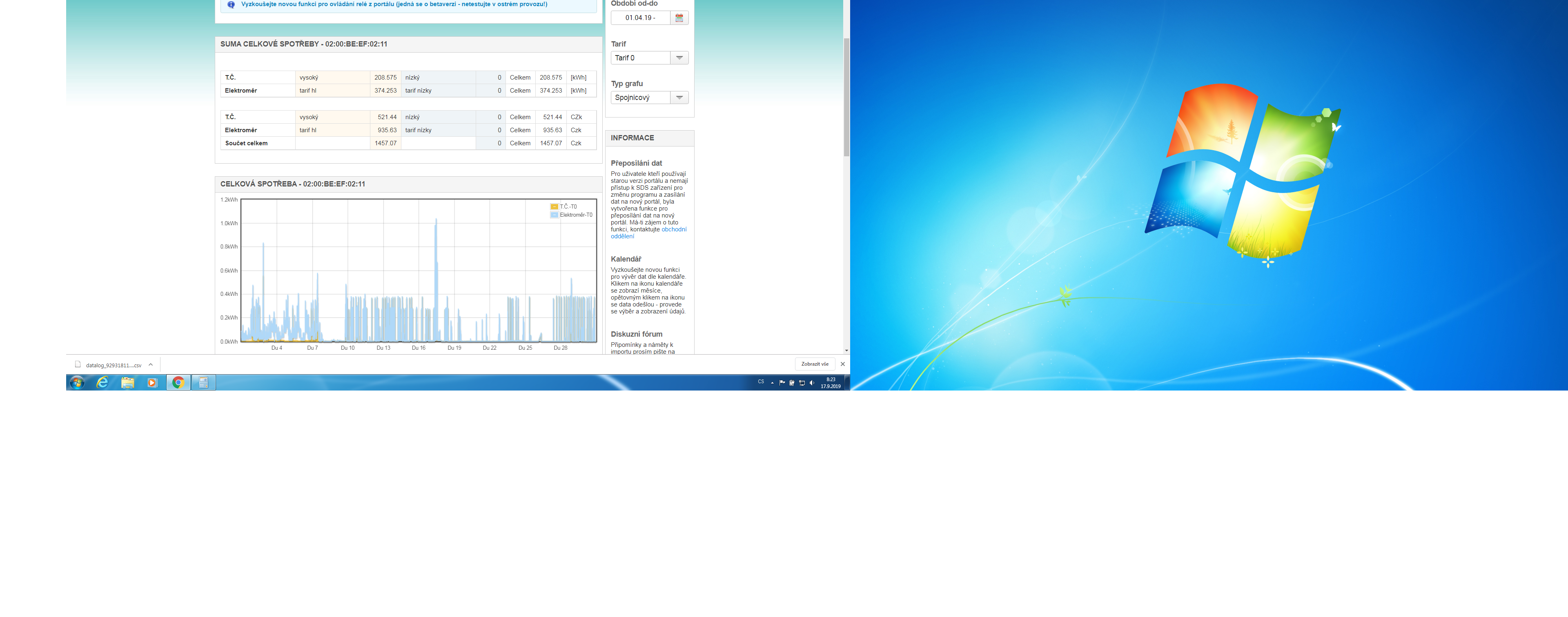 Mám údaje za tento tok od mája. Stará klíma nemá meranie spotreby v app.