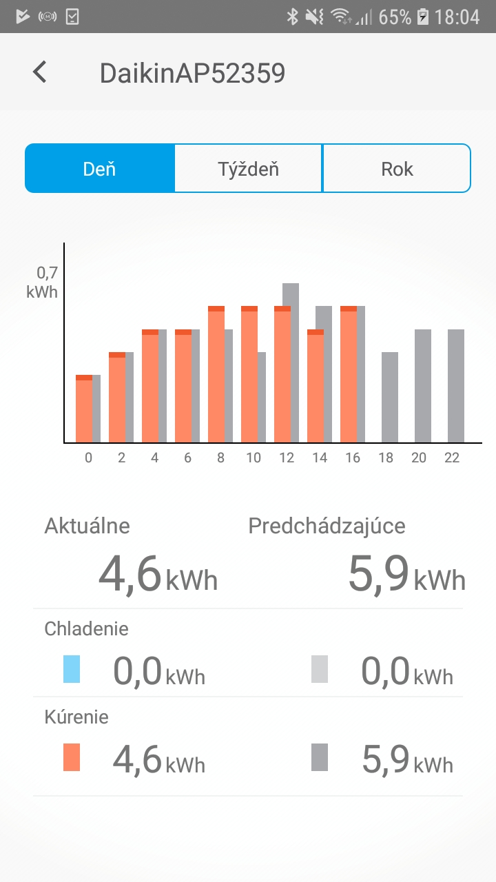 Minulý týždeň som mal spotrebu klímy na kúrenie 25.9 kWh,