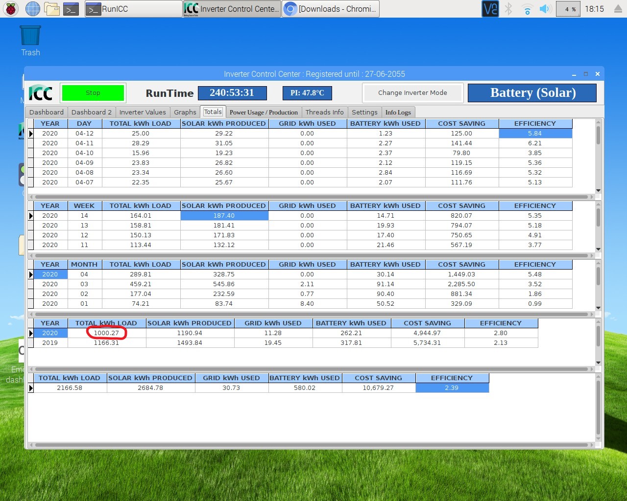 Nechci bejt ukvapenej ,ale zdá se, že solární zima je za náma. Už jsem asi 14 dní nevypnul měnič, jen aby to vydrželo. Předběžným výpočtem mi vychází spotřeba s prvním rokem FVE cca 600 kWh z DS, což je v podstatě pozitivní. Hrubě jsem počítal návratnost FVE a v mém případě je to +/- 6,5 roku, což už je argument a bude hůř (lépe). Po propočtení dat mi vychází nejvýhodnější sazba z DS D01d, pravděpodobně ponížim i hlavní jistič na 3 x 20A. To přinese taky úsporu.