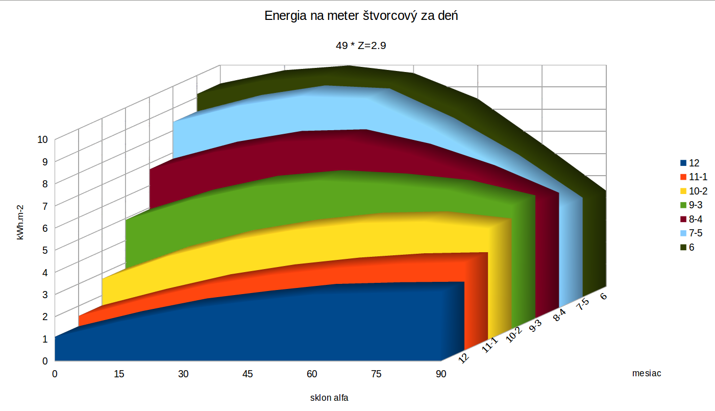 Pre hrubú predstavu ako vplýva sklon na energiu za deň vzhľadom na mesiac, zem. sírku