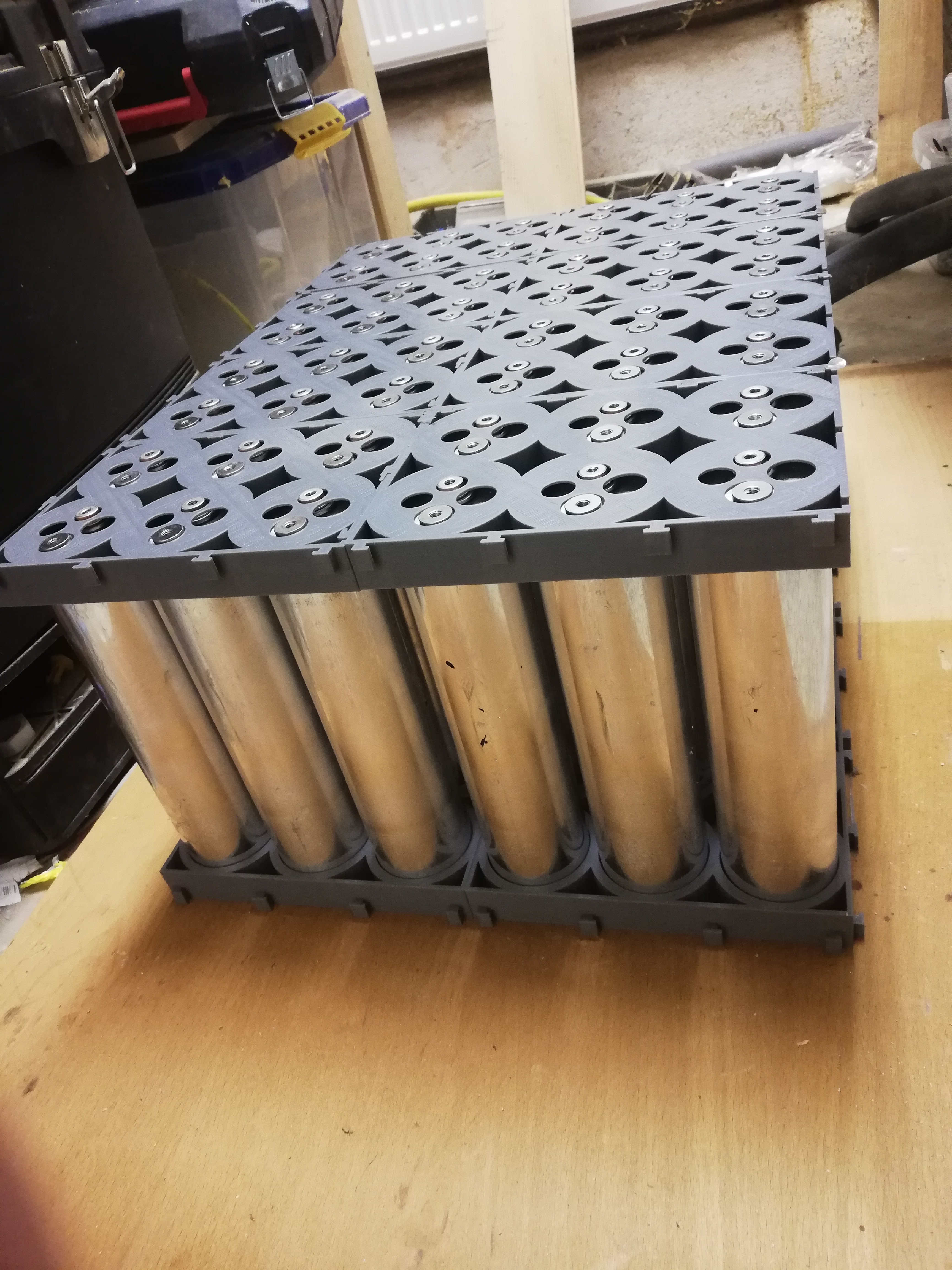 Jasné,každý to má položené jinak,jen je potřeba si uvědomit v celku tu váhu a obslužnost.Třeba u mě tlačí na spodní stranu metr dlouhou přez 500kg. Vůbec jsem nad tím nepřemýšlel a origo boxy po ořezání spodní strany bez krycího víka se začly pod tou vahou deformovat,na výšce 1.87m to udělalo přez 1cm.Tak pokud někdo bude tisknout je třeba promyslet vše