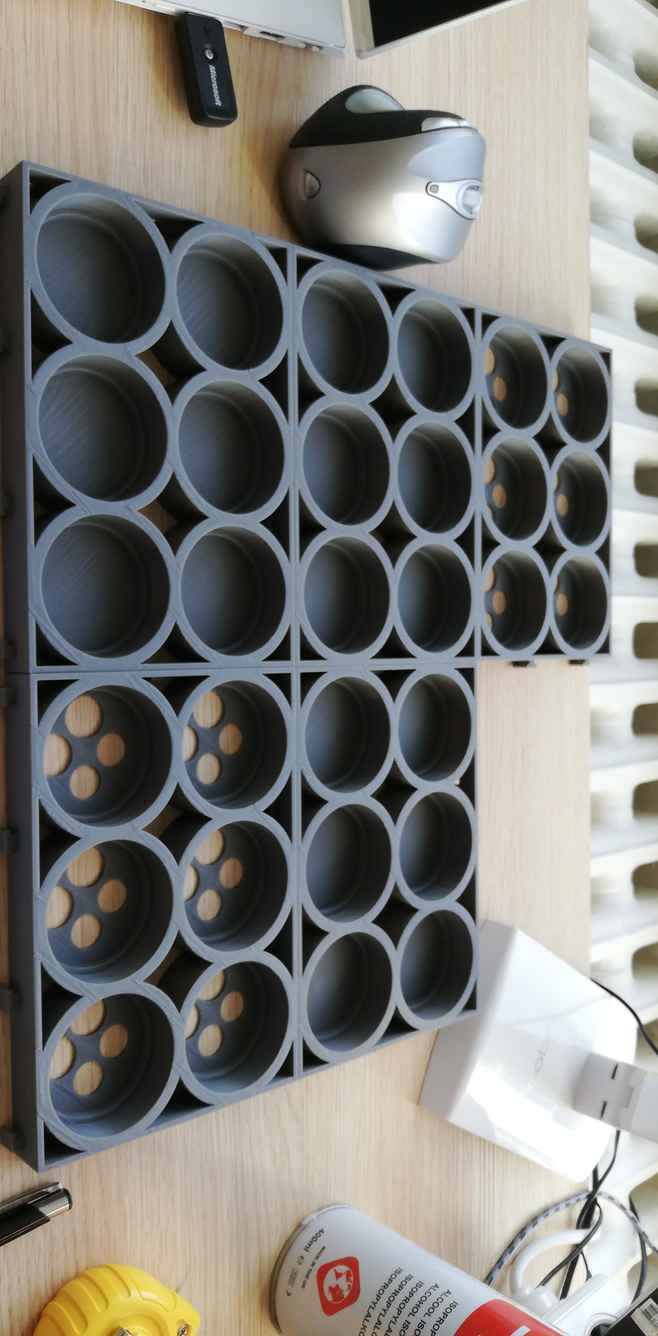 tiskárně výplň 80% ,ta spodní by měla být průchozí pro článek,pokud budou ležet kvůli přístupu. Ořezat a odvrtat původní obal mě příjde rychlejší ,ale při více vrstvách podléhá deformací vahou válečků!