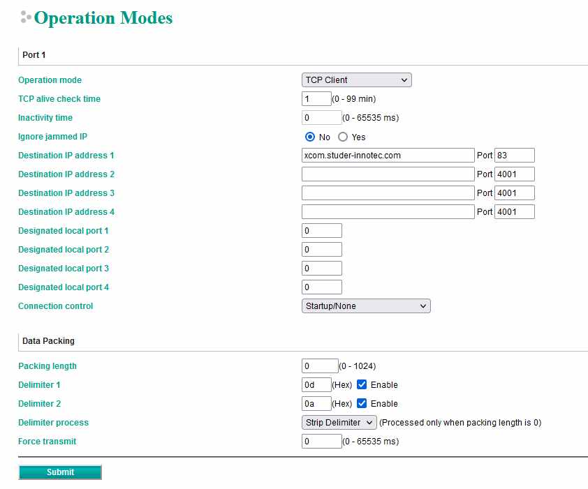 Port1=0,1,xcom.studer-innotec.com,83,,4001,,4001,,4001,17,5011,5012,5013,5014,0