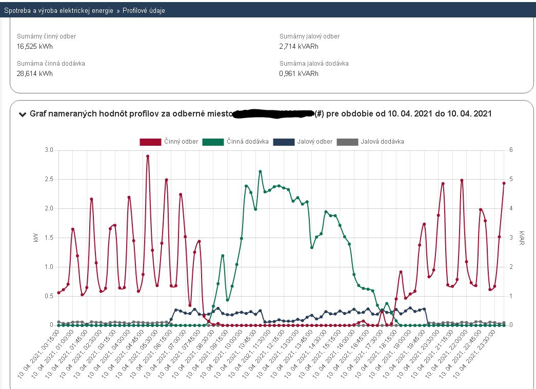 Jalový odber sa začína od 6:15 ráno a končí okolo 19:45 je tak max do 200W