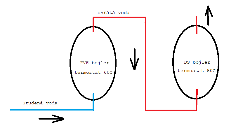DS bojler nemůže být studený, když do něj vstupuje teplá (horká) voda z FVE bojleru.eman píše:Pak, ale budu mít DS bojler studený a FVE bojler se přes něj bude ředit....
