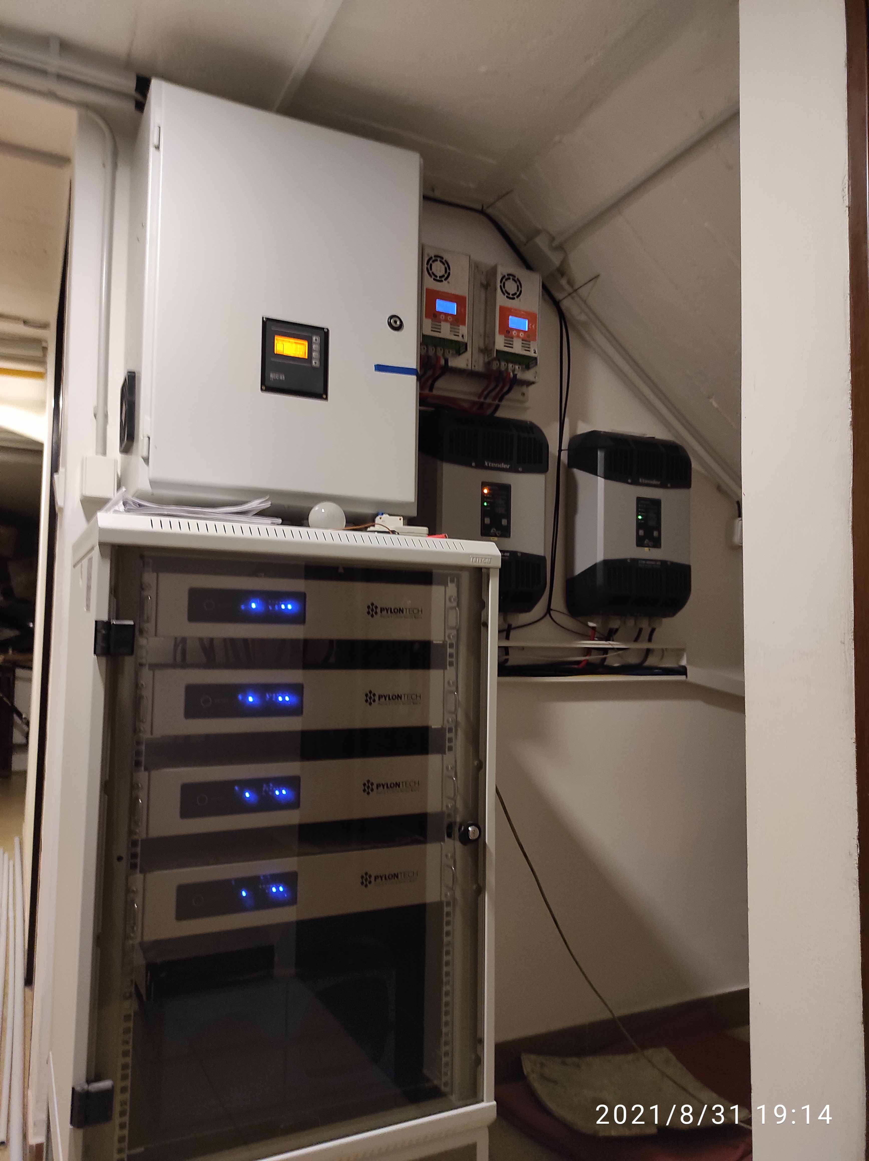 ostrov skoro 8kWp neustále ve stádiu zrodu: smartshunt(ex WBJR), MPPT150/45, MPPT 250/100(ex midnitesolar 150 clasic lite), 16S a různě P cca 340Ah Winston, MP II 5000,( ex Powerjack 8kW, ex samodomo cca 4kW). 48V DC rozvody a spotřebiče.
