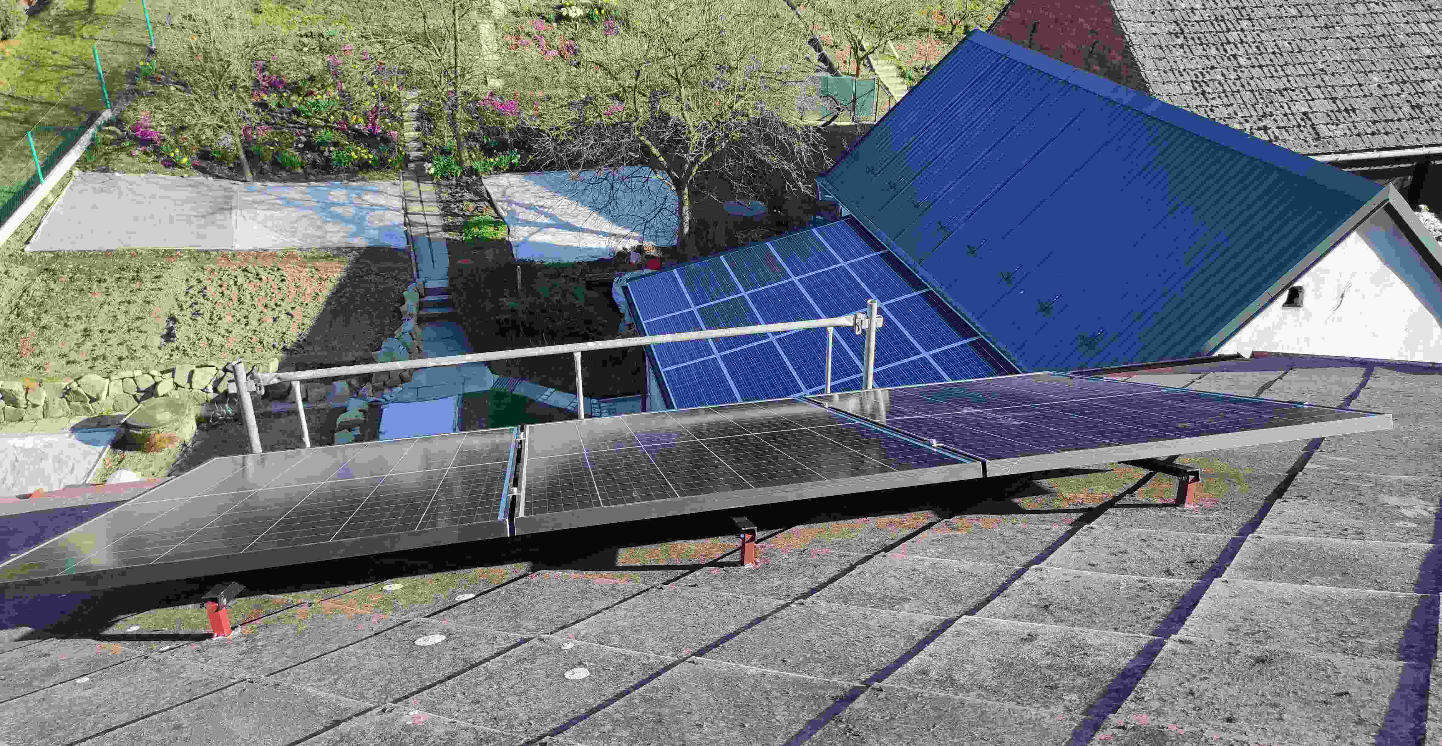 Rozhodl jsem se pro přidání panelů na střechu domu a jižní fasádu. Střecha je dosti velká a dobře orientovaná, jen je na ní položený 32 let starý Eternit, který rád praská a pohyb po střeše je tak nemožný. Zatím není důvod krytinu měnit, a tak se 3 panely podařilo umístit jen na držáky, které byly na střeše už při stavbě a to z důvodu budoucí instalace fototermických panelů na ohřev vody. Další panely jsem instaloval na fasádu, kde je ovšem z jihu již hodně oken a tak nebyla plocha větší než na 9 panelů: