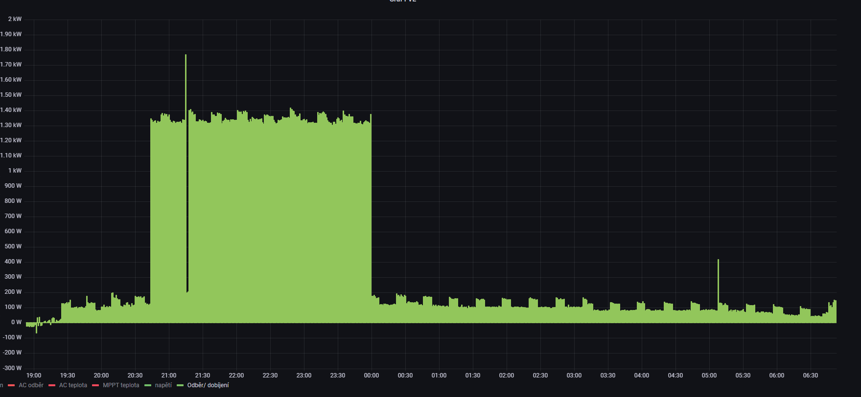 Tak dnes ve 12:16 poprvé peak přes 2 kW z panelů, nabíjím baterie a běží k tomu sušička s prádlem.