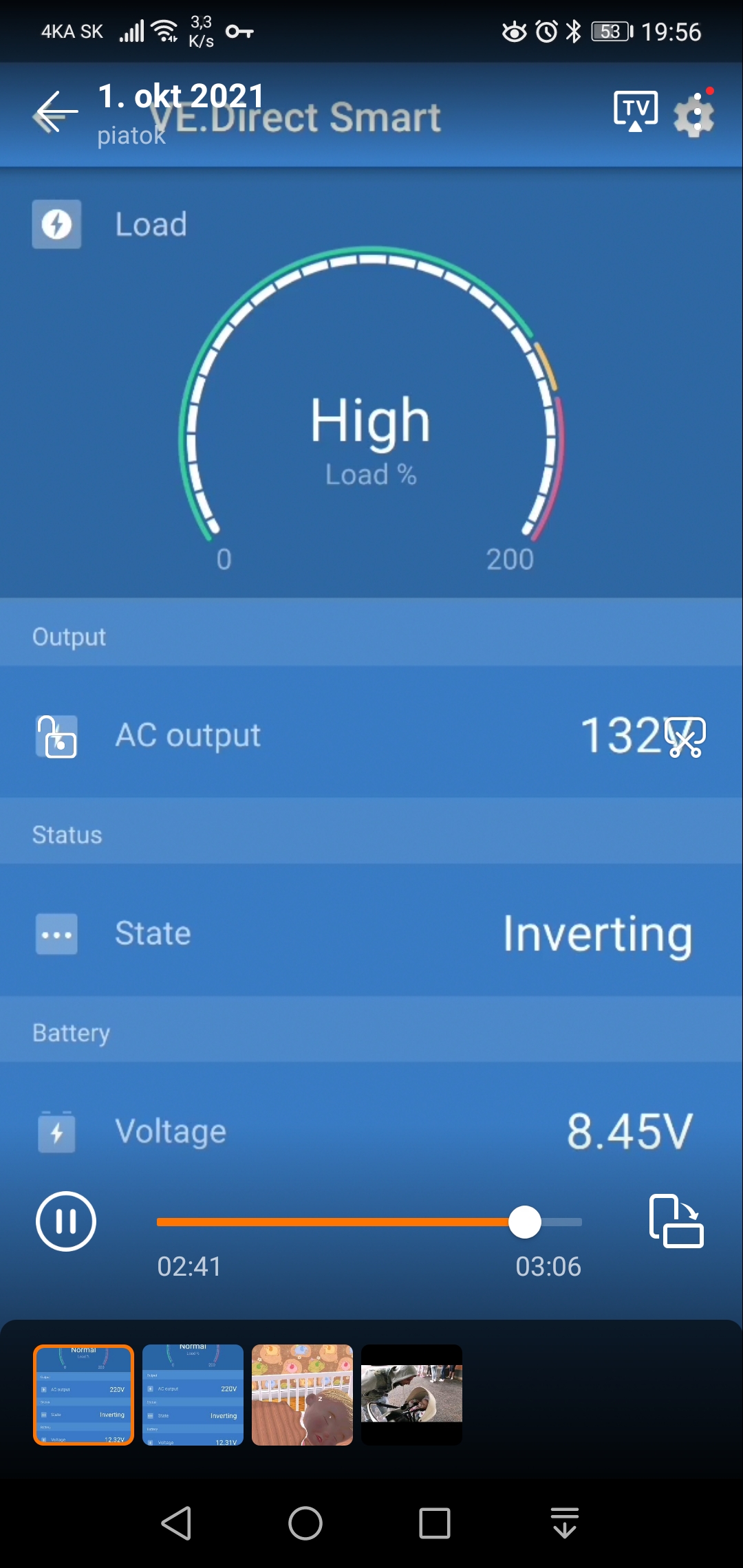 5,4 kWp JJZ 4deg,1,8kWp JV 24deg, do 13.8.2022 bylo 3,6 kWp, MPII 5k, Victron MPPT 250/85-TR, aku 9,45 kWh Lion 15S, BMS 200A, Smart Shunt 500A.