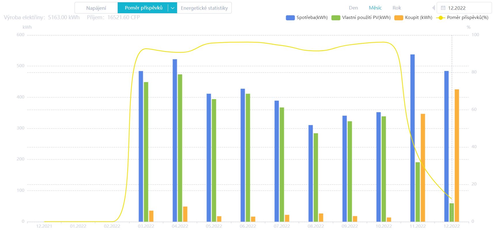 z toho grafu není vidět kolik byla vlastní spotřeba a kolik je dodávka do sítě