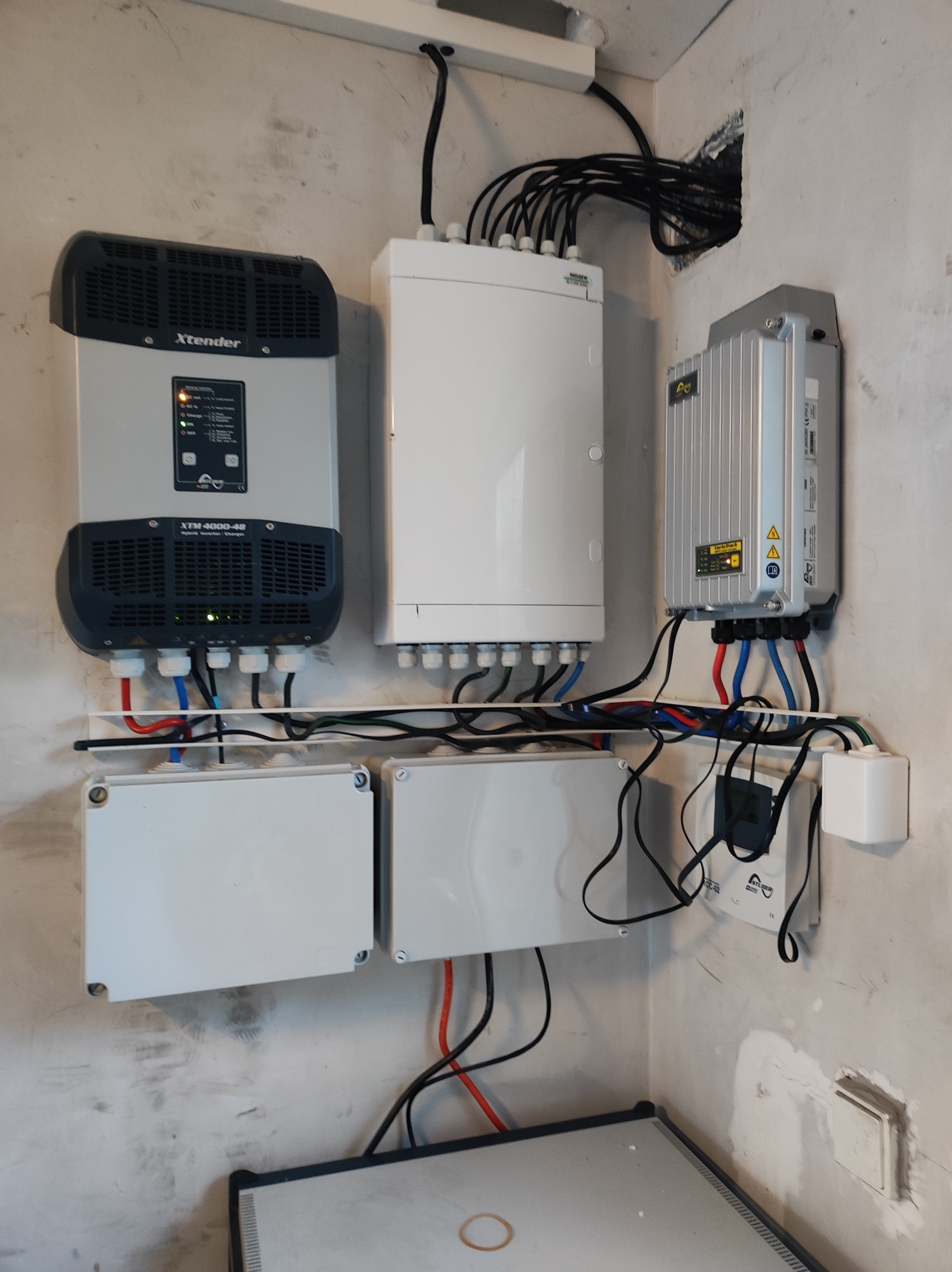 Po menším zdržení (covid, změna práce) přeci jen nastal pokrok. Díky pomoci šikovné firmy je všech 14 panelů na střeše, kabely u rozvodné skříně VT-80 a XTM 4000-48 visí na stěně a v brzké době budou zapojeny a oživeny. Protože mám jen jedno XTM, tak plánuji přicucávat ze sítě. Prostě potřebuji např. 6kW, tak 4kW vezme z baterek nebo z panelů a 2kW ze sítě. Jedná se tedy o SmartBoost a jak ho správně nastavit ? Ještě jsem četl o spínání transfer-relé a mám v tom trochu hokej, jaký je u Studeru mezi tímto rozdíl, hlavně v nastavení.