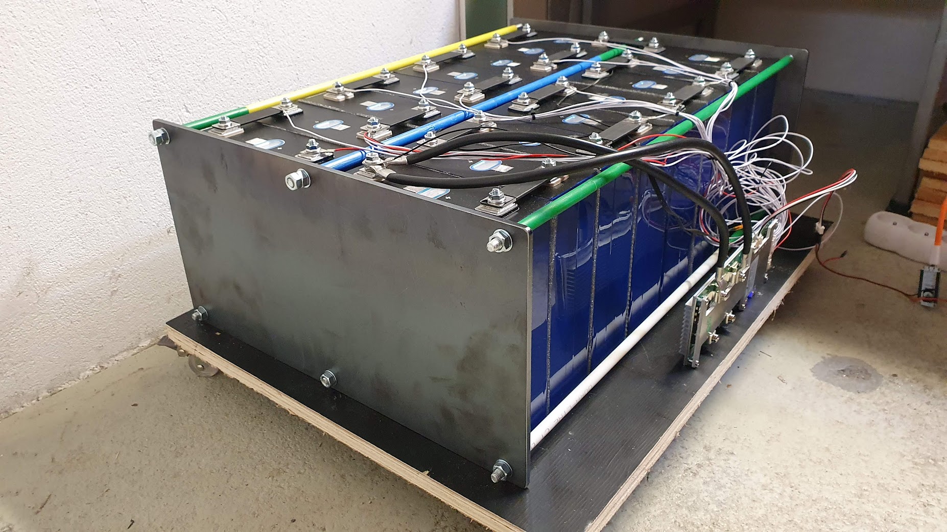 Nechal som sa inšpirovať tými čelami, dal som to kamošovi vypáliť z 4mm ocele :) Medzi akumulátormi a čelami je 3mm izolácia.