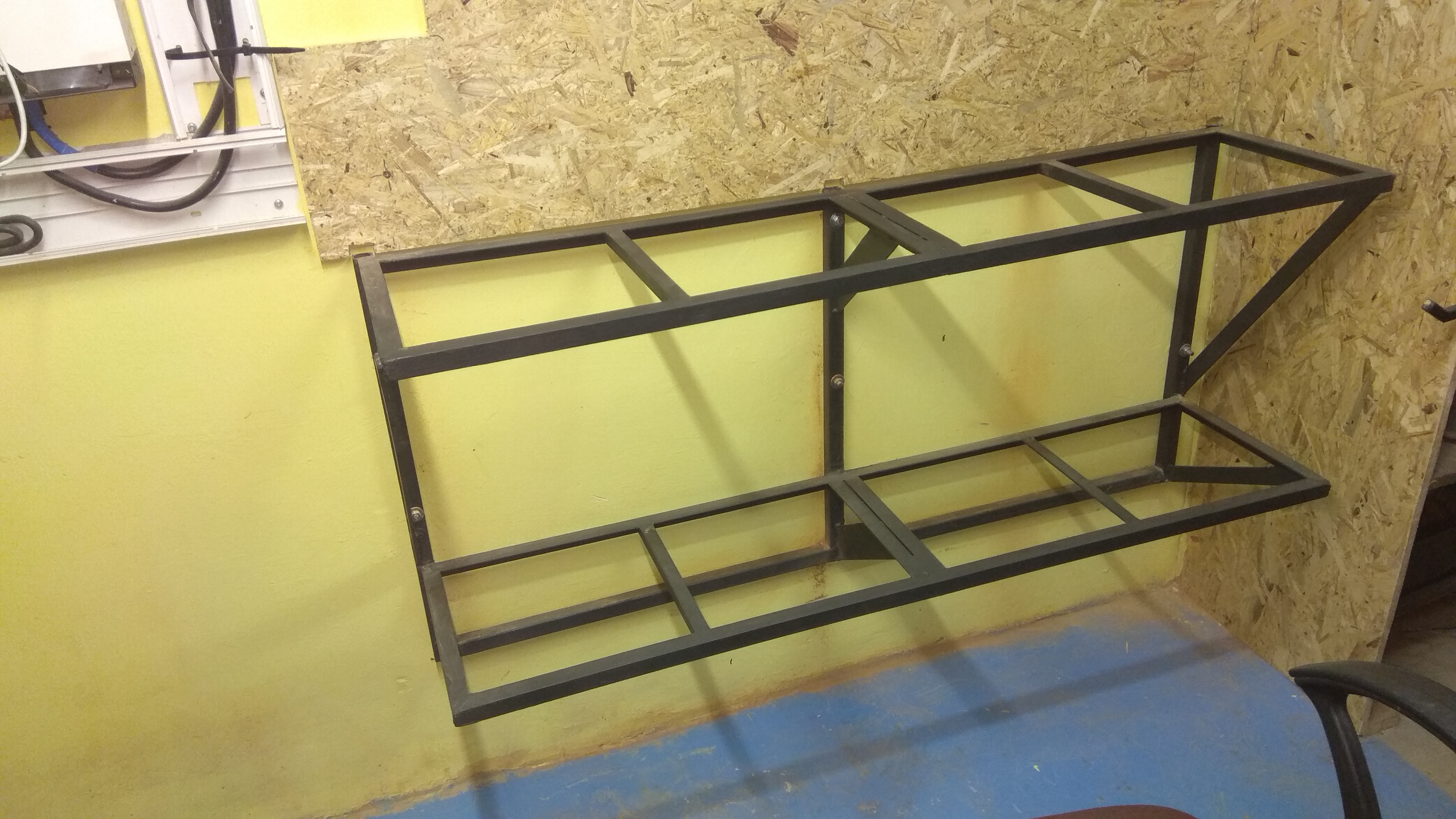 Tak abych nebyl jen nepříjemný posílám typ na regál na baterky.Na té svislé části,která jde až do stropu bude ještě CEMVIN a na něm pak regulátory,sběrnice,bižu a jištění.Na ty vodorovné plochy pro AKU pak něco měkčího nehořlavého,ještě nevím.Horní plocha bude zatím pracovní a odkladová,baterie budou dole.Ale časem kdo ví?Chce to jen trochu vládnout svářečkou,ale výsledek stojí za to.Ve výřezu vlevo bude zkosení 120 kabelové lišty (aby navázala na tu tu 120 vlevo),která půjde vodorovně přes desku.