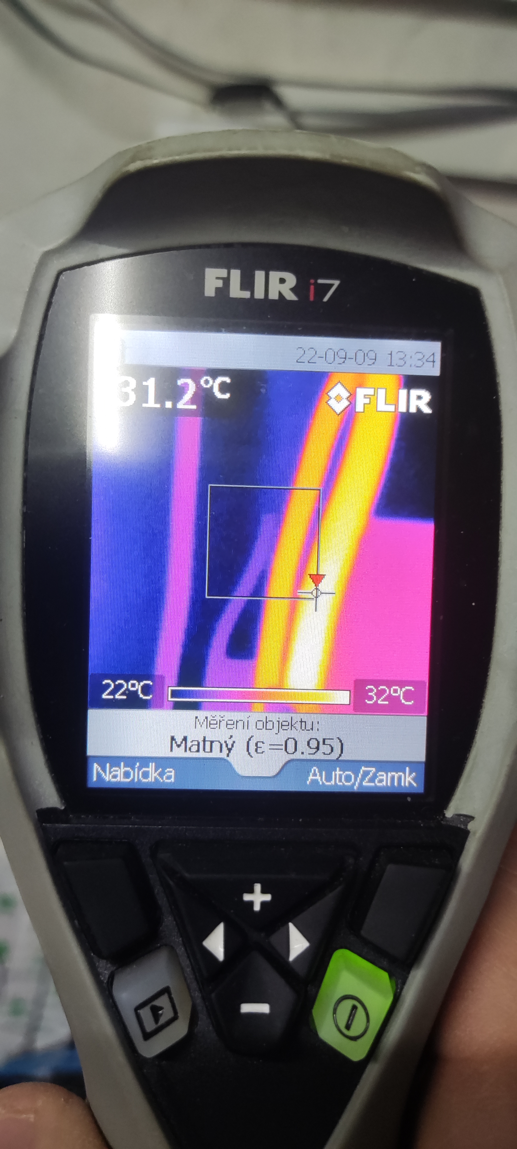 Tak som to ocko na 50mm kábli stlačil ešte raz vedľa, teplota klesla skoro o 20 stupňov.
