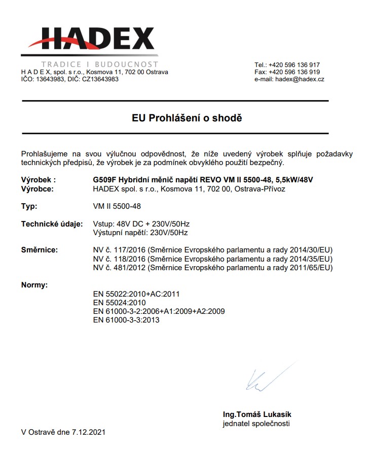 Zjistil jsem totiž, že v prohlášení o shodě se podepsali jako výrobce (jde o REVO).