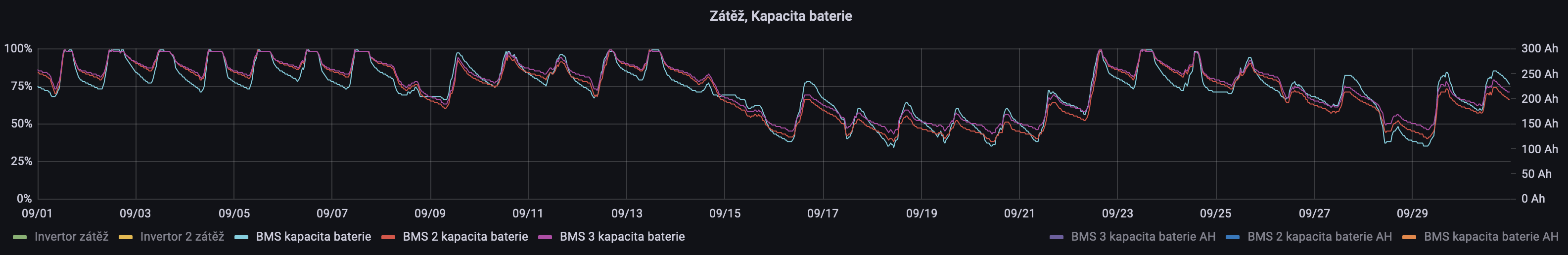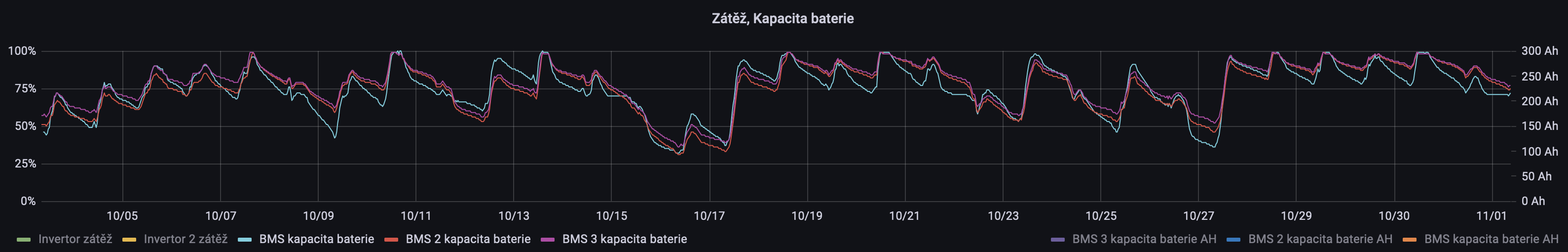 Jeste je zajimavy graf SoC jednotlivych baterii behem poslednich 30-ti dni: