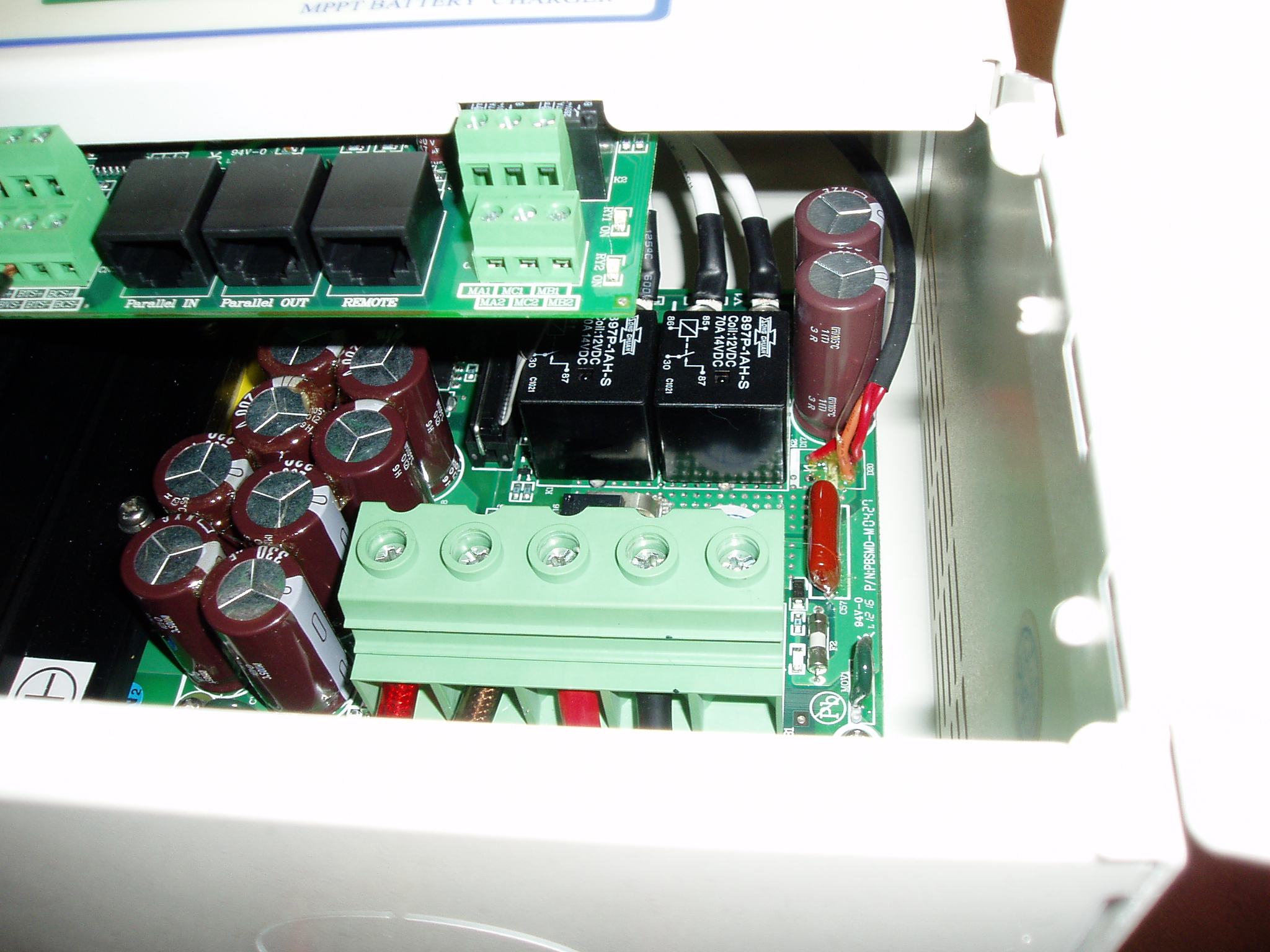 - PCM každou chvíli hlasitě cvaká dvěma 70A relátky >> nevhodné do obývaných místností. Relátka jsou tam z toho důvodu, že při proměřování VA charakteristiky připojených panelů nejprve s cvaknutím odpojí dva toroidy, změří napětí naprázdno, poté zase cvaknou, připojí panely a zkouší maximální proud panelů, téměř až do zkratu. Jde o tzv. sweep - hledání bodu maximálního výkonu, ale třeba Tristar odpojení řeší pomocí MOSFET tranzistorů a je tím pádem naprosto nehlučný a mohl bych si ho dát třeba pod postel. - Nemá připojení k počítači/ do internetu. Resp. má, ale přes převodník a jen na zobrazení několika základních údajů. Naproti tomu Tristar lze přes síť totálně ovládat, nastavit, prohlížet a to vše z prakticky jakéhokoliv zařízení, také lze přesflashovat firmware. Myslel jsem, že bez připojení do sítě se obejdu, ale nee, je to příliš návykové.