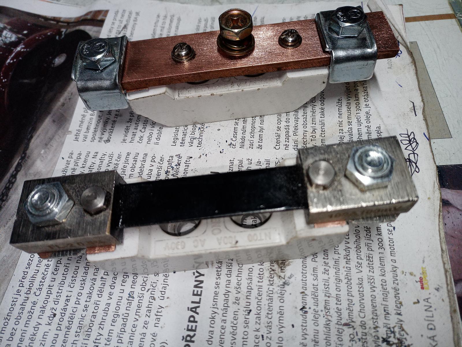 V tom předvánočním blázinci sem našel chvilku. Vyrobil si držák na bočník a mínusovou zběrnu.Použil sem spodek držáku pojistky PN000.