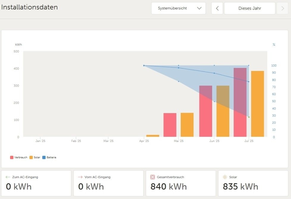 Pokud systém píše, že vyrobil 835kWh a spotřeboval 840kWh, tak tam jen nelítá 5kWh, ale i kdybych přičetl celou kapacitu baterie do plusu, řekněme 37kWh, protože víc než 100% v ní o půlnoci 31/12 být nemohlo ani teoreticky, tak pak je to 840 spotřeba vs. 872 výroba, to je realitě blíž, ale jen napůl cesty. A toto asi nebyl v reálu výchozí stav ...