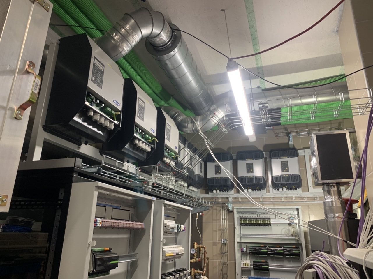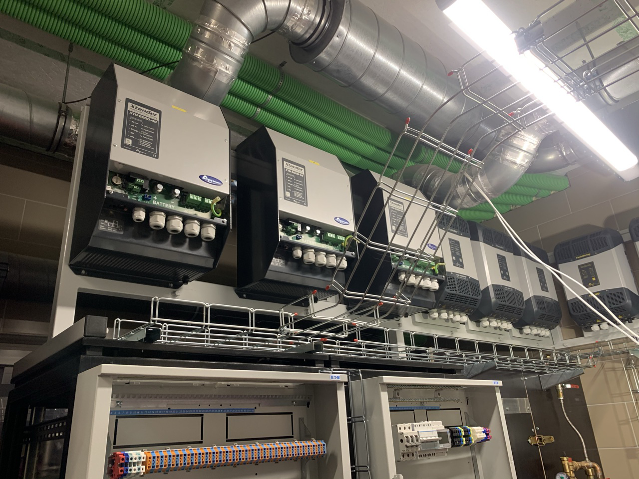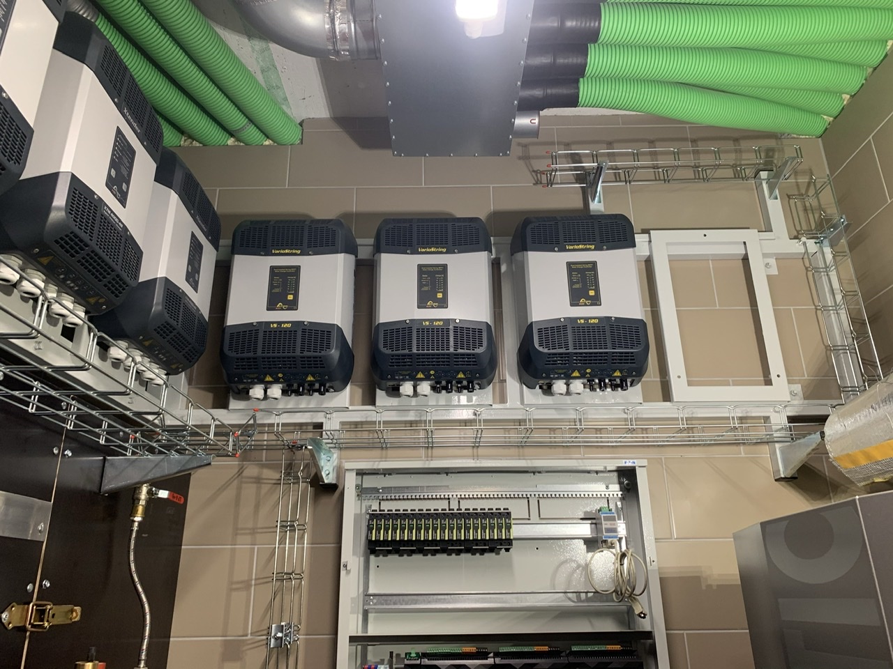 Hybrid, 4x260Wp Amerisolar, 6x260Wp Mono CSun, 2x260Wp Aleo, 9x 230Wp JuliSolar, 32x Astronergy 245Wp, 3f-Victron Energy Multiplus 48/5000, 750 Ah trakčná, 800 Ah OPzV stacionarne, 3xMPPT Victron Energy 150/70-Tr, 1xMPPT Victron Energy 150/45-Tr, AC-out Coupling Fronius Symo 4.5-3-M