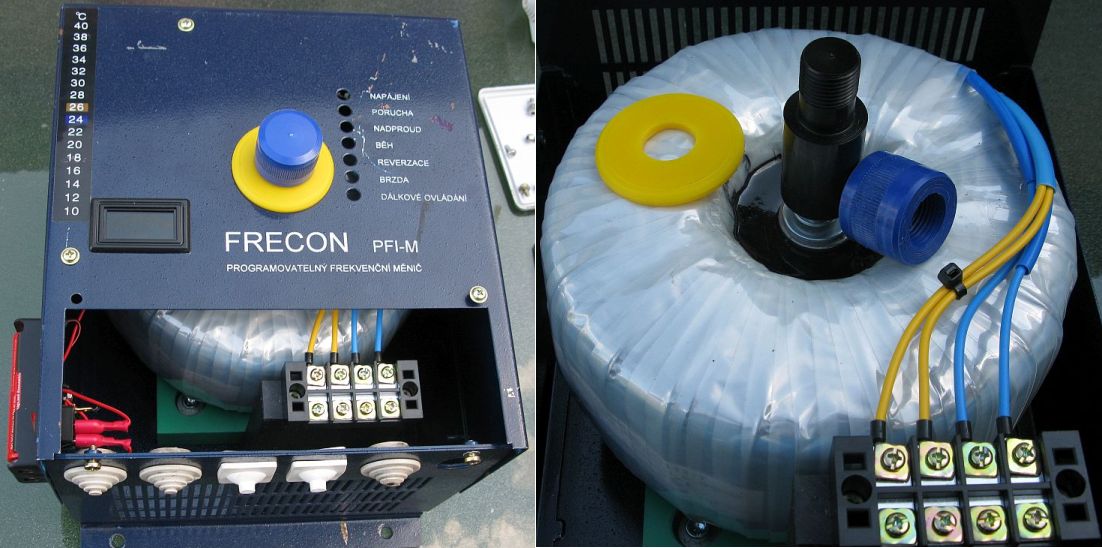 Připojím trafo za měnič FE č.1 nebo FE č.2 , samozřejmě přes soft-start a vrčí jak blázen.