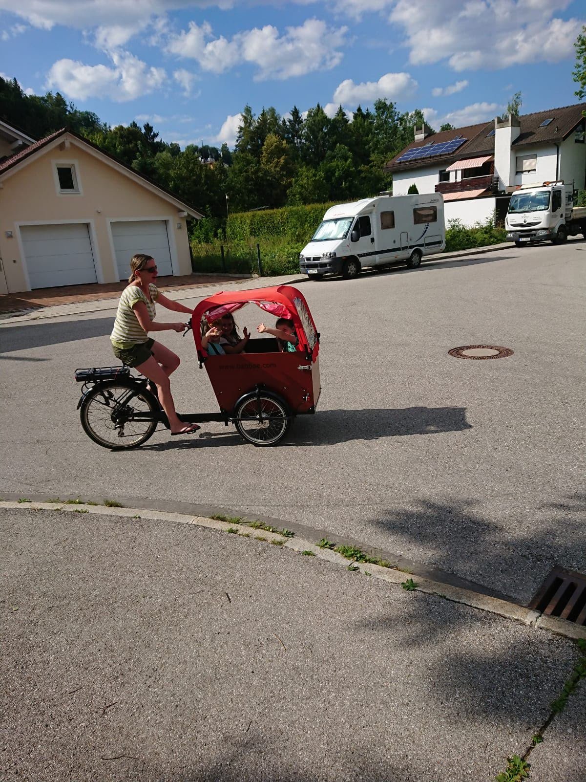 Na obrázku moje drahá se 2 našimi + 2 cizími na cestě ze školky... V létě v zimě, to kolo se zaplatilo oproti výdajům na druhé auto, pak jsme kolo ještě dobře prodali