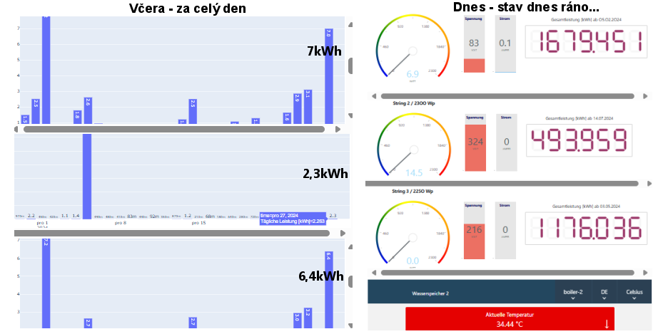 Tady včera krásně, po dlouhé době, skoro po měsíci zas... 15,7kWh
