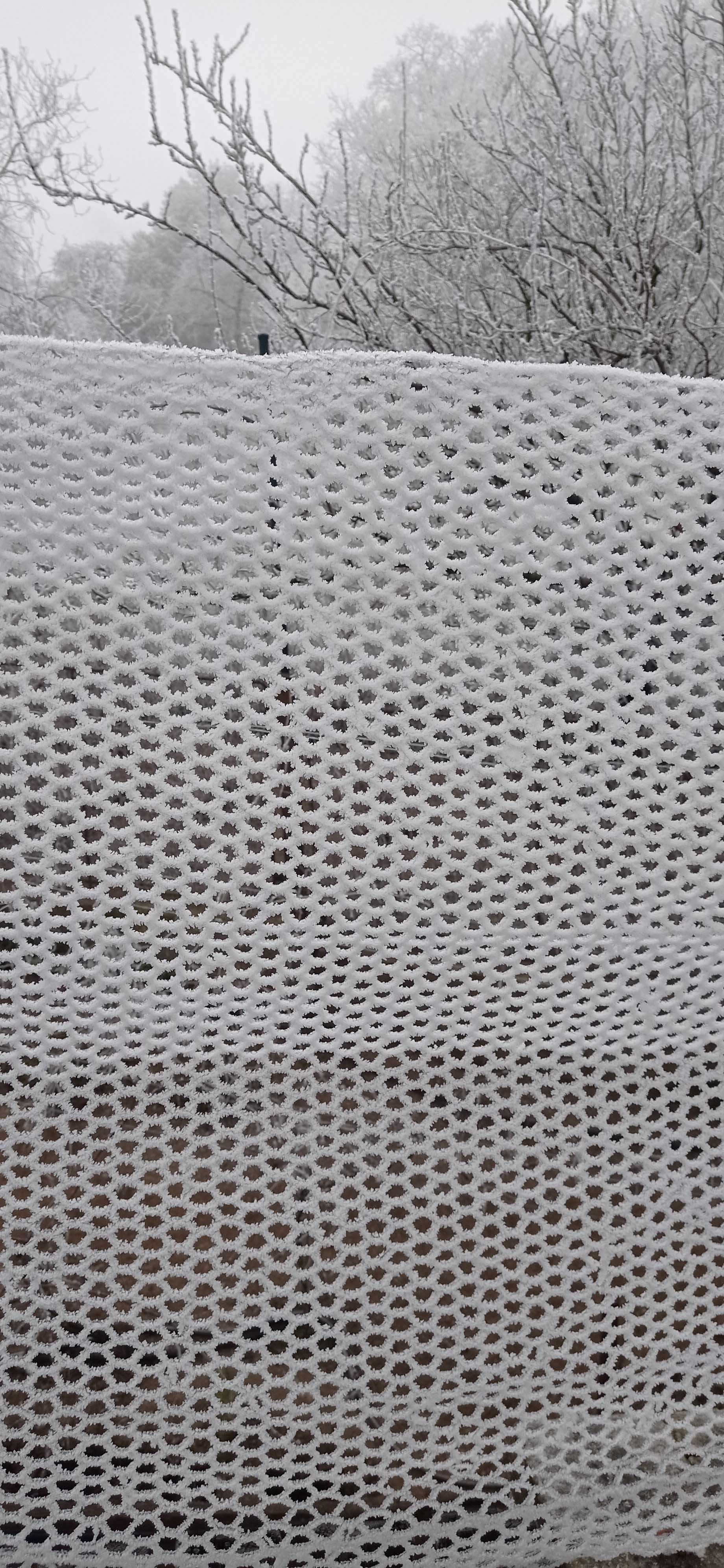 U nás čtvrtý den mlha, námraza. Z pletiva se stává zeď a stůl na ping-pong je pokrytý ledem. FV výroba pokrývá tak třetinu potřeby.