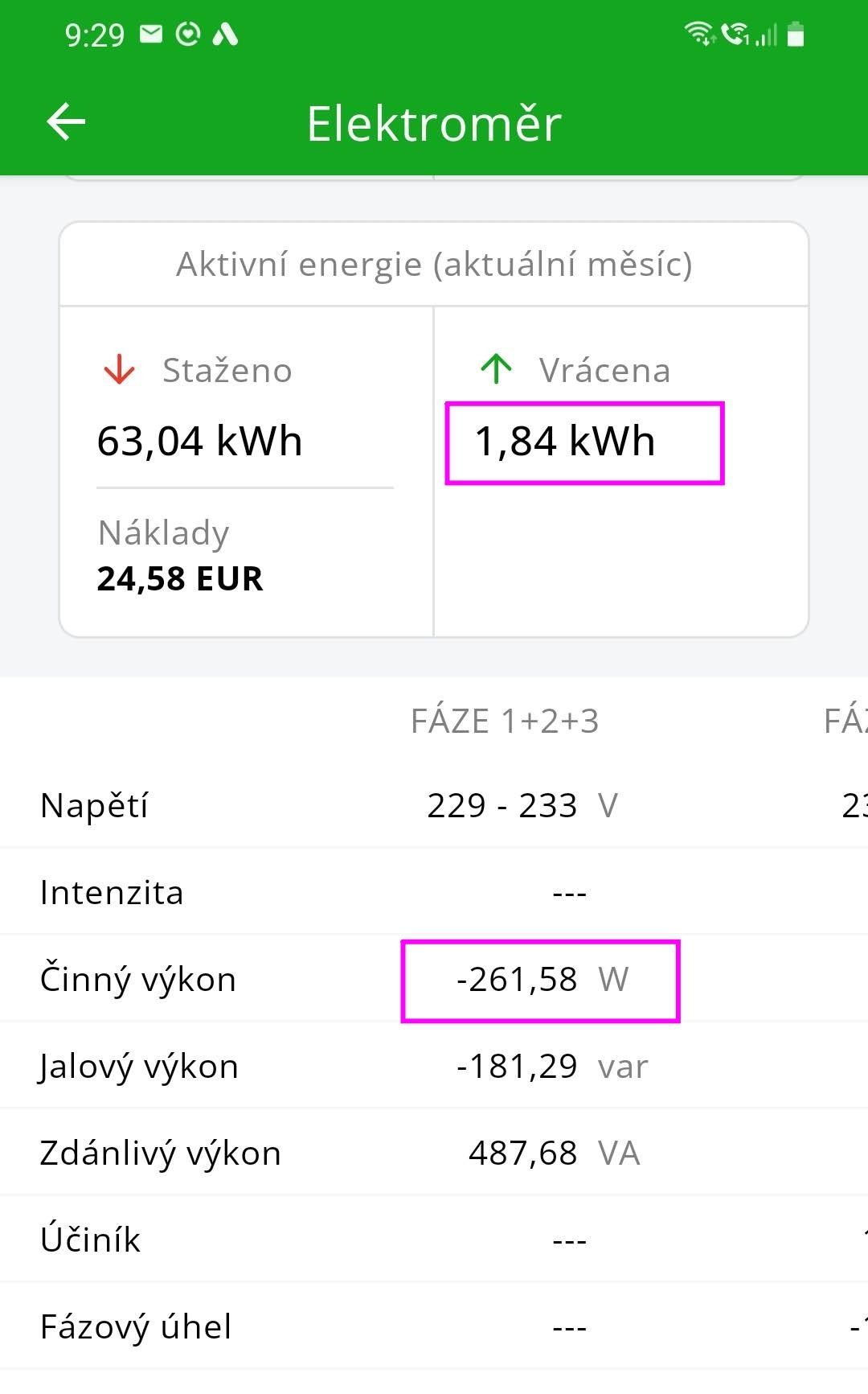 V 9,30 dopoledne teče do sítě už 260W...