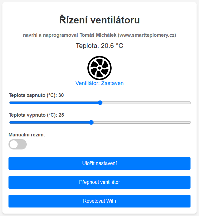 Zatím testuji pro ovládání ventilátoru a naprogramoval jsem k tomu i webovou administraci. Používám step down, takže jsem schopen ze zdroje pro spínání zátěže napájet i celou desku.
