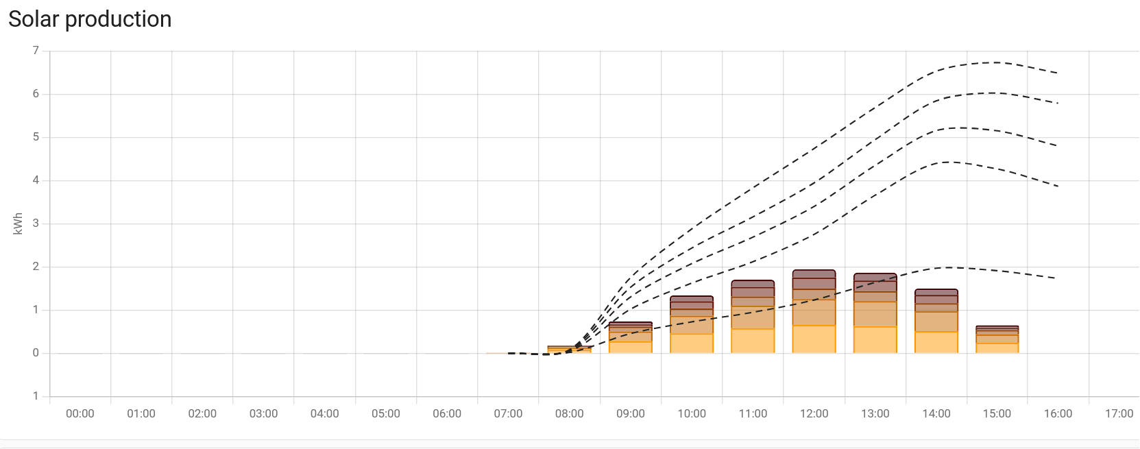 Maximálna bieda a vyhliadky o nič lepšie. Za posledných 7 dní spolu 16 kWh, z čoho väčšinu zožrali meniče