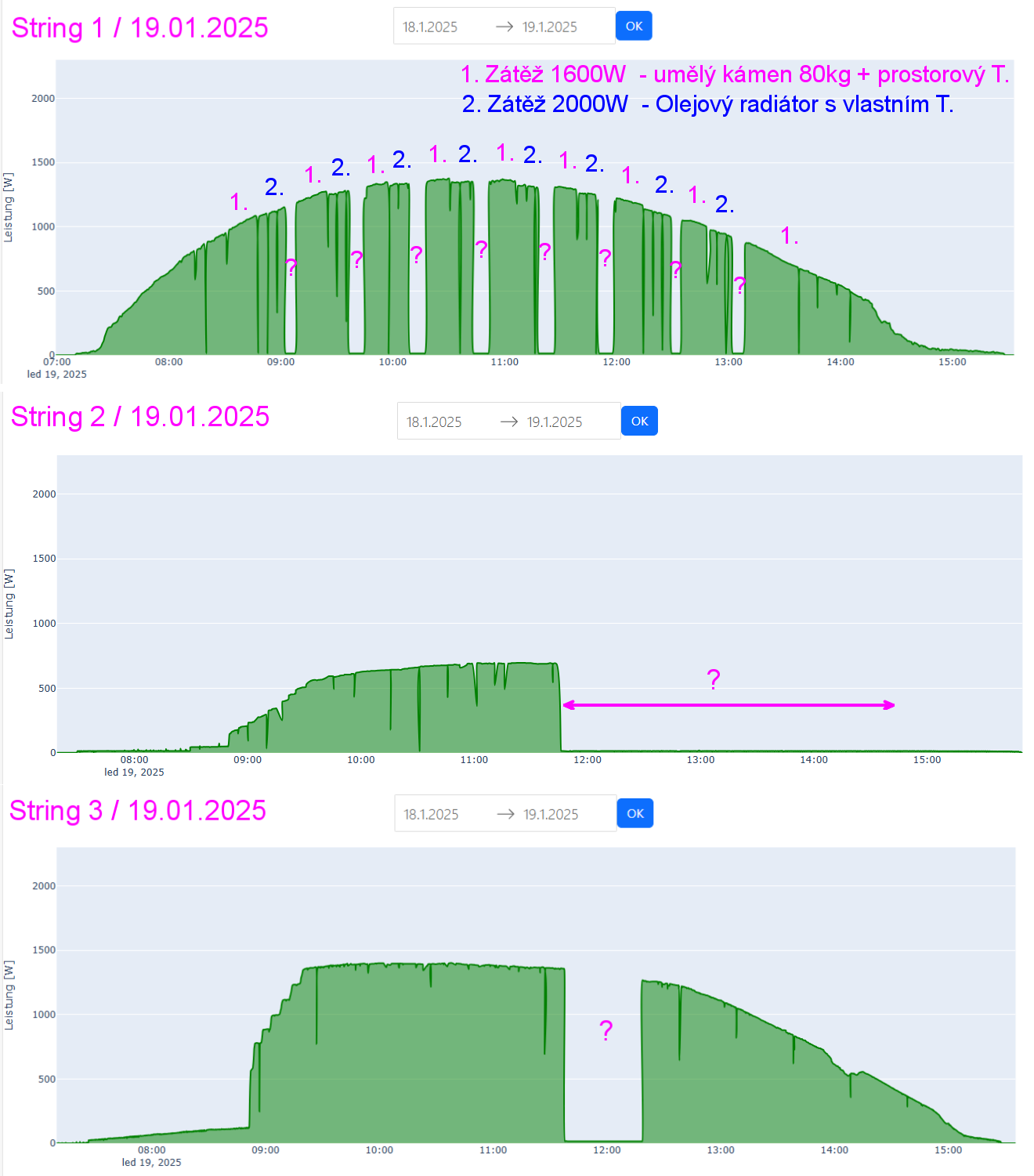 Porovnání všech již 4 stringů a teploty vody bojlerů 1-3 : POROVNÁNÍ
