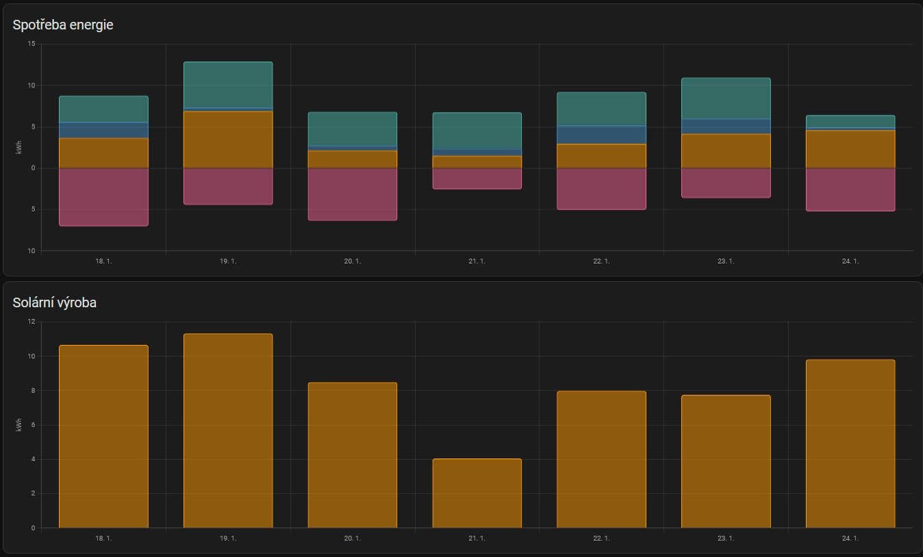 Druhá půlka ledna se u nás jeví (alespoň zatím) podstatně lepší než ta první ... Na běžný provoz domácnosti už to většinou stačí (samozřejmě ještě s občasnou malou výpomocí z DS). Prostě od minulého pátku konečně pár slušných dnů. Doufám, že si leden už tu formu udrží