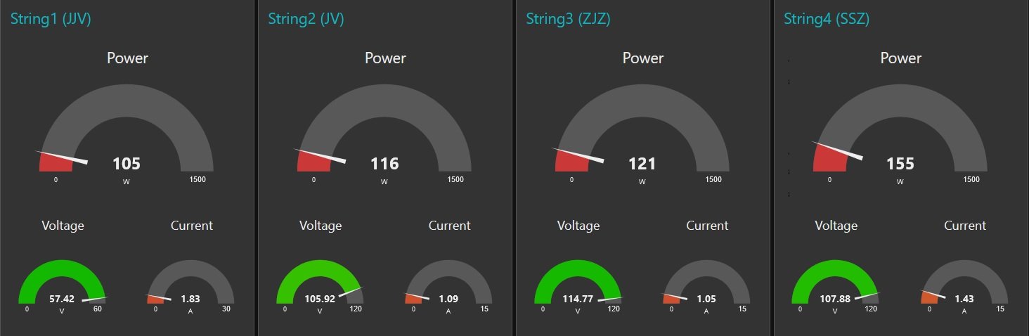 Výkon jednotlivých stringů on-line : Victron MPPT-1 / Victron MPPT-2 / Victron MPPT-3 / Victron MPPT-4