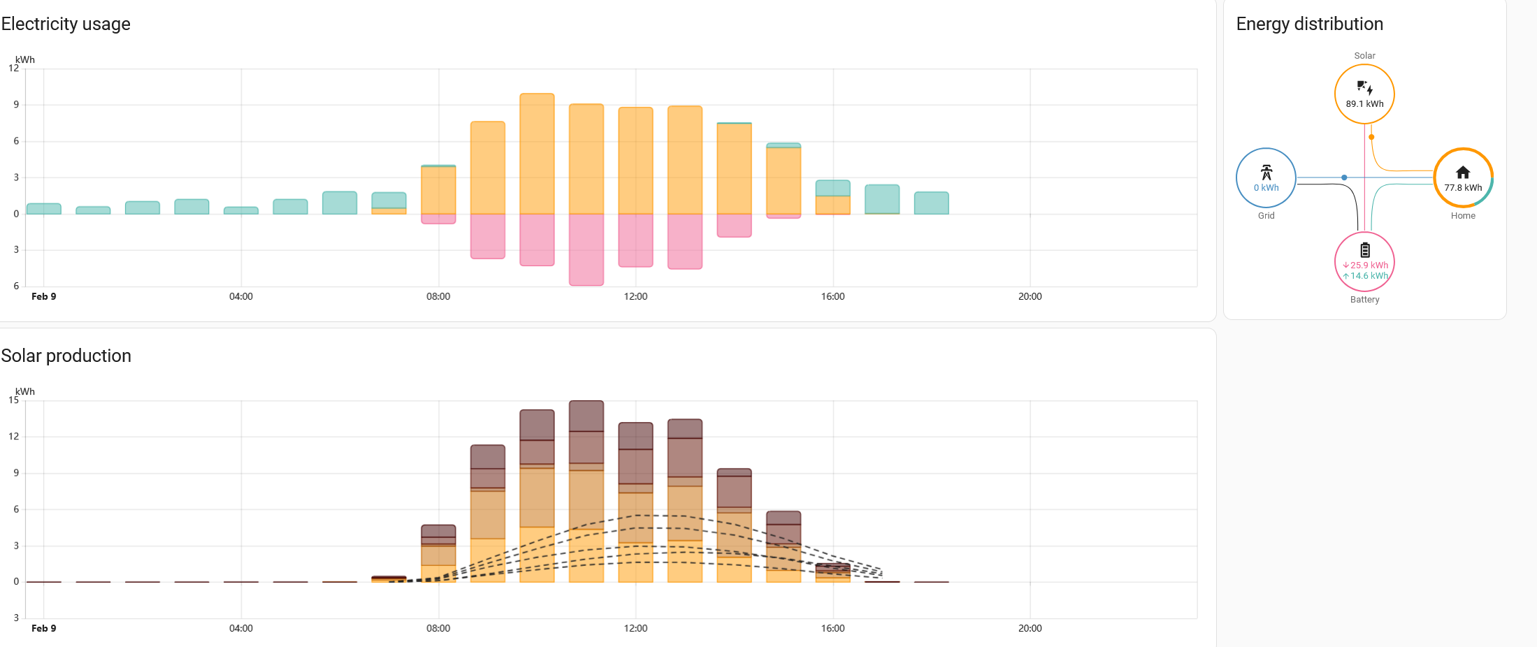 5kWh do bojlerov (dokonca aj druhy dnes nahrialo na 40°) a skoro 11kWh do baterky a domu.