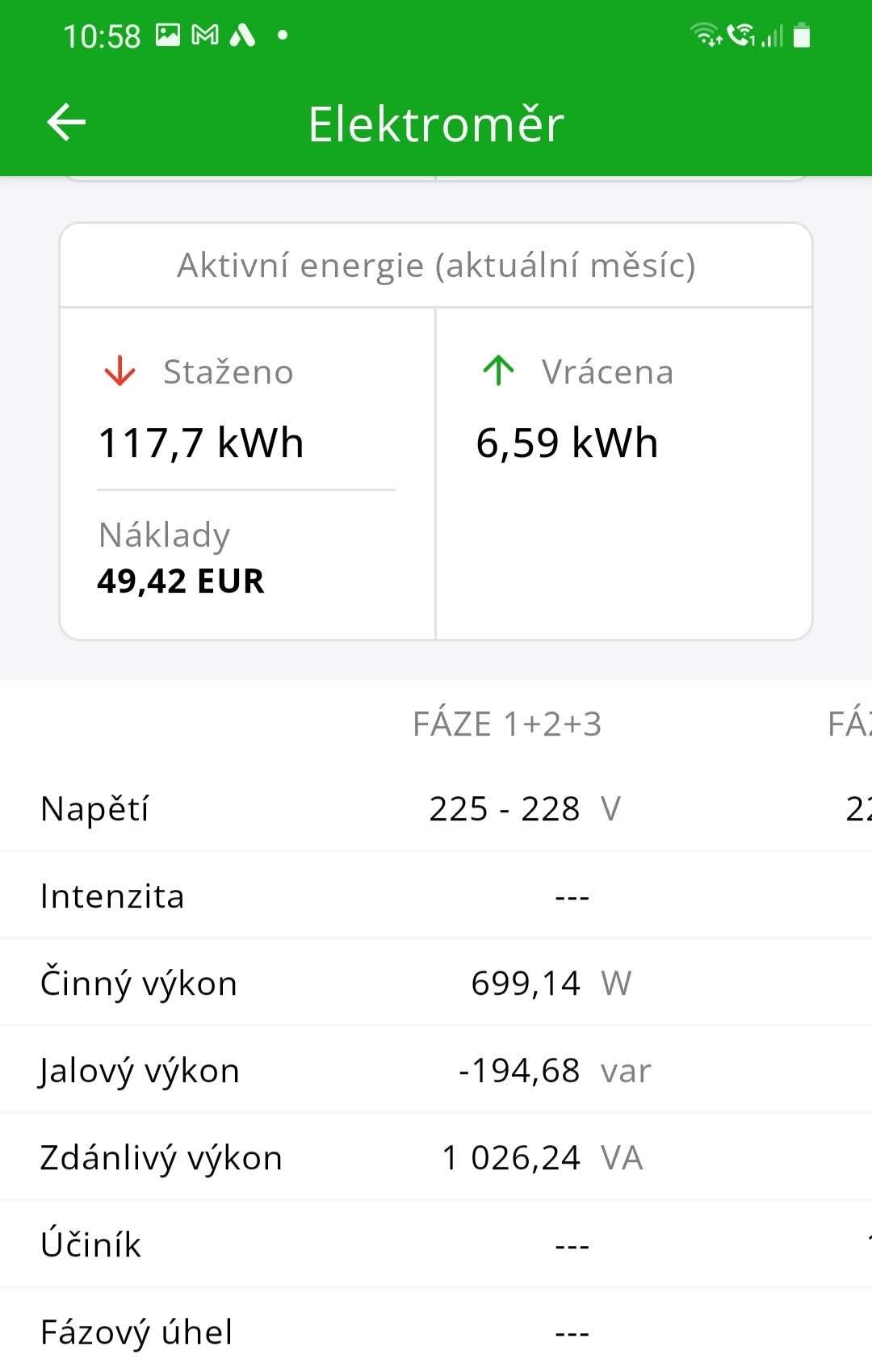 I když ukazuje kladnou hodnotu, zároveň se to zobrazí jako mínus DC zátěž a nula od nuly - jako kdyby to tam nebylo.