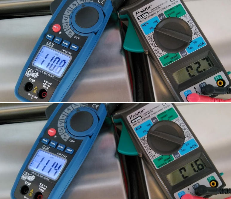 A opět, co si myslíš, že měří ten klešťák na kmitočtu řádu 50kHz, tj kmitočtu spínání regulátoru dobíjení, pokud je vícefázovej, tak ten kmitočet může být řádově 100kHz, 150kHz... měřák (hlavně to železo v kleštích) jistě není lineární nad 500Hz. A tady jsi s kmitočtem o několik řádů jinde. Zase jenom číslo.